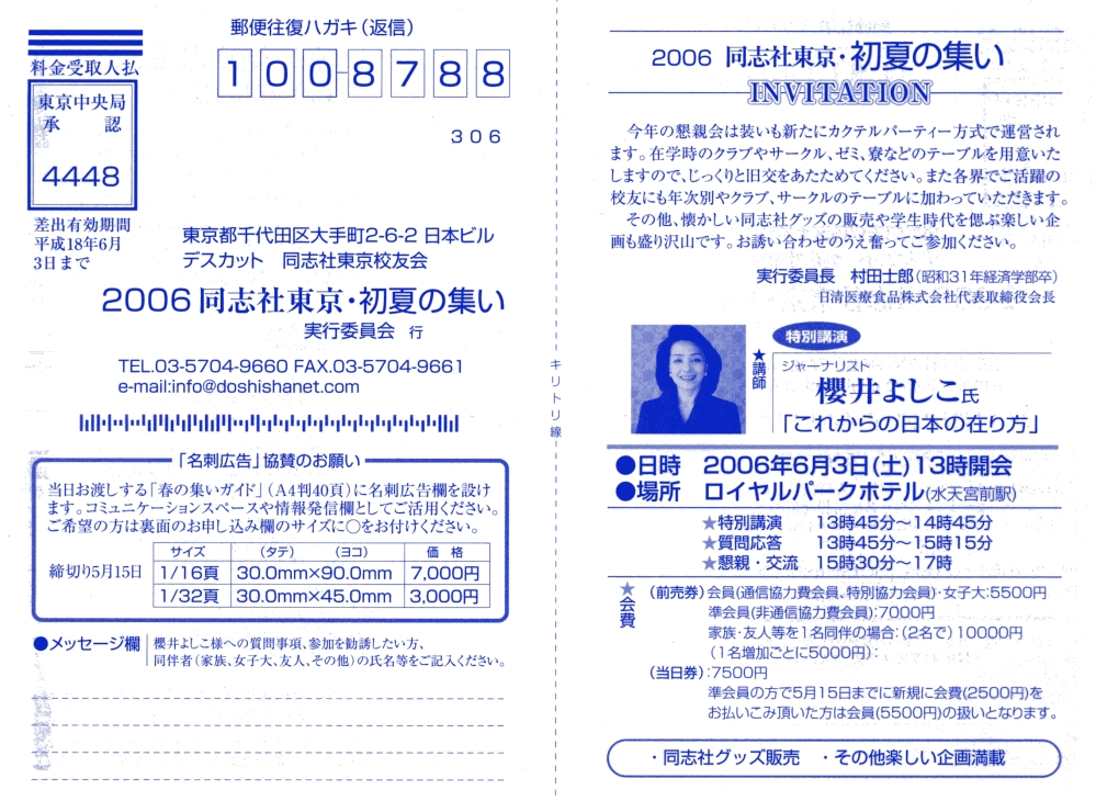2006同志社東京・初夏の集い参加費(会費)についての補足ご説明 |