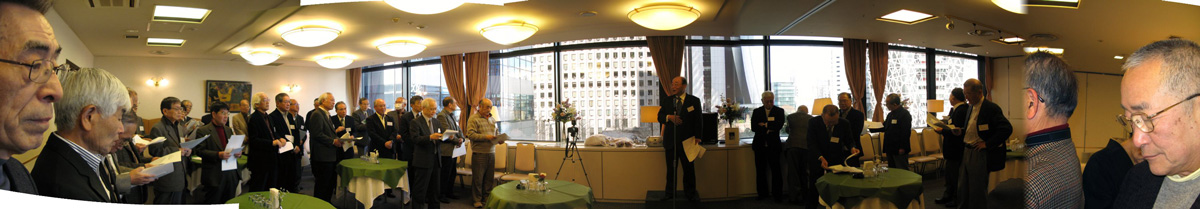 次いで同好の士であるサークルの世話役が報告。まず鍵本芳明氏が旅行会での昨秋の「伊豆大島島めぐり」と昨年末の忘年会について、春と秋のゴルフコンペでは、松本健七幹事が結果などを説明。「同志社東京囲碁会」では小川郁夫世話役が活動状況とともに新規入会者の勧誘の必要性を訴えた。月例昼食会では有原清世話役が近況を説明、最後に校友会について吉岡睦高幹事から会長、副会長の改選や春の集いなどの報告があった。