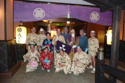 今年も温泉部会を8月29−30日に岳温泉・裏磐梯散策で開催しました。 昨年に引き続き、参加の皆さんのご協力で無事目的を達することが出来ました。 ありがとうございました。 今年の一泊旅行 何とも楽しくも大変でした。 29日の仮装盆踊り参加は「真夏の夜の夢」であって欲しいと願いつつも皆さんが一生懸命に踊り、歩き回ったことは踊る宗教よろしく楽しい思い出になりました。あらためて42会のメンバーの皆様のご協力には、胸がつまる思いです。 盆踊り終了後のコメントは、「2度とゴメン蒙る」という言葉がでるのではないかと密かに心配しておりましたが、予想に反して、敗因の分析と、次回出場に向けての熱い思いでした。さすが、42会の皆様、頼もしい限りです。 皆様、本当に60才も半ばすぎなのでしょうか。 サミュエル・ウルマンの詩 YOUTHにYouth is not a time of life; it is a state of mind; (青春とは、人生のある一時期をさす言葉ではない。それはこころの有りようだ) という一節がありますが、まさにこの言葉は私たちにピッタリです、と言いつつも二日目の五色沼散策のおり、足がもつれて不覚にもばったり派手に転んでしまいました。肘と膝にあざができた程度でした。ご心配おかけしました。 皆様はいかがでしょうか。岡田さん、一生懸命踊っていらっしゃいましたが後遺症はでてませんか。 永山さん、足の引き攣りは大丈夫ですか。 日置さん、池本さん持病(?)ぶり返していませんように。 漆戸さん、町娘お疲れ様でした。鬘がよく似合っておりましたが、さぞかし熱かったことと思います。 金田さん、盆踊りの感想は、如何でしょうか。お孫さんのお世話とどちらが、たいへんでしょうか。木村さん、柏原さん、早速のメールありがとう御座いました。片桐さん、志村さん助さん、格さん、ぴったりでしたね。 片桐さん、池本さんの舞台の美女への声援の写真傑作、お二人の嬉しそうな顔。 其の前で柏原さんが、一生懸命踊っていらっしゃるのにね。 加藤さんご協力本当にありがとう御座いました。いろいろお気遣いいただきありがたく思っております。さぞかしほっとしていることでしょう。同じ思いです。 志村さん、出演、カメラマンありがとうございました。お陰様でよい想い出になります。ゴンドラ乗り場での集合写真人物と背景のバランスがとてもいいですね。志村さん編集制作のDVDも楽しみにしています。 最後にもう一度皆様に感謝の気持ちを込めて御参加、ご協力有難う御座いました。 来年も温泉部会、頑張って良い企画を策定しますのでよろしくお願いします。 温泉部会幹事 鴨下眞佐子 |