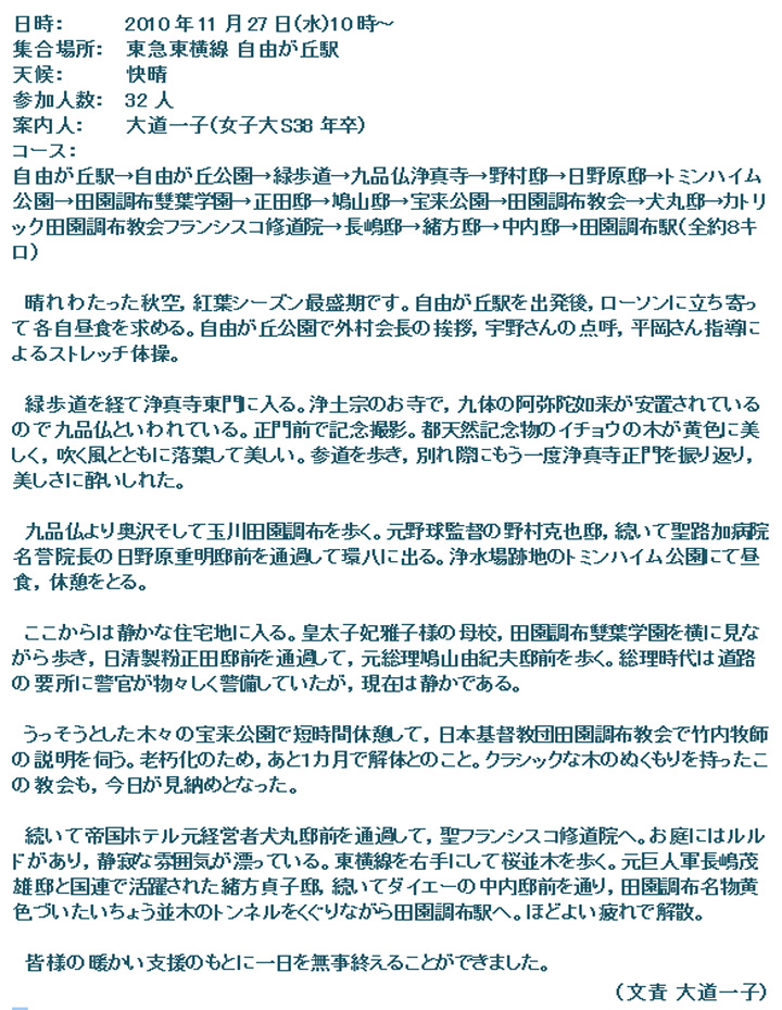 同志社東京歩こう会予定表(2010年7月 〜 2011年7月)