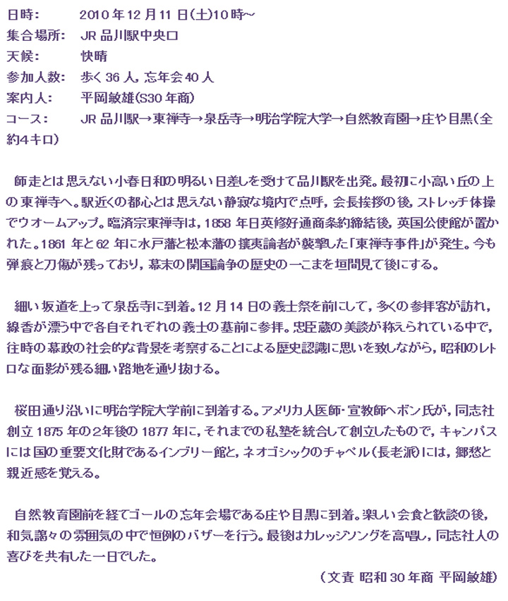 泉岳寺、明治学院、目黒 《忘年会》 |