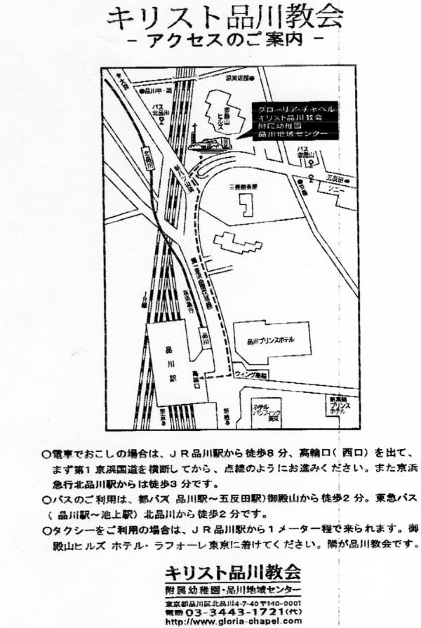 教会: キリスト品川教会 〒140-0001 東京都品川区北品川