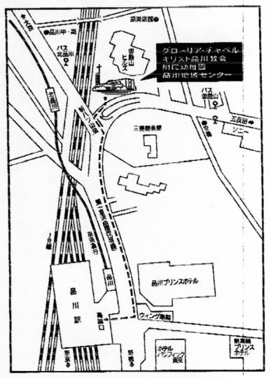 なおキリスト品川教会への品川駅よりの地図を添付します。詳しくはこの地図をクリックして大きくしてご覧ください。