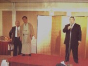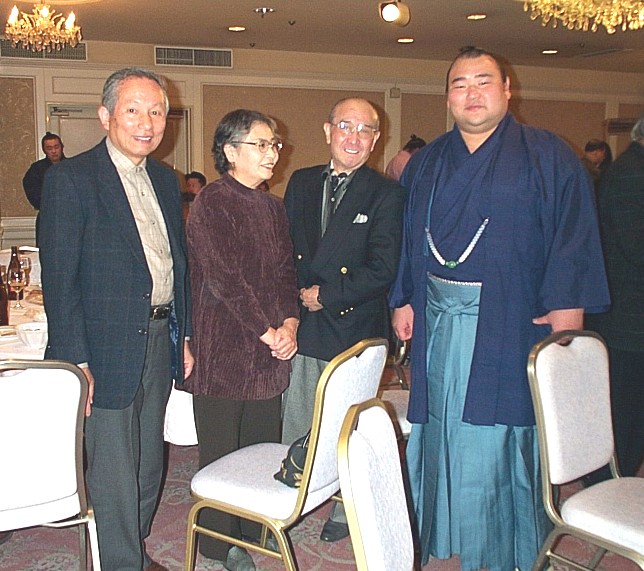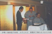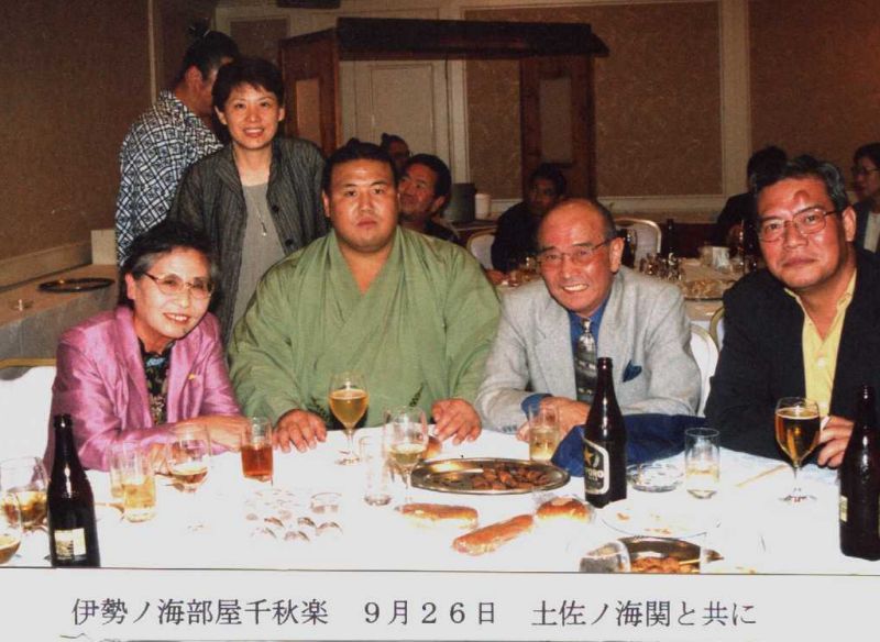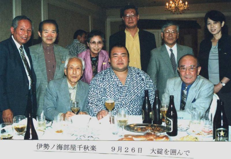 9月26日(日)18:30よりロッテプラザで伊勢ノ海部屋秋場所千秋楽打ち上げパーティが行われ、同志社校友会東京支部からも西村四郎さん(23・経)、木村ケイさん(29・文)、酒井能夫さん(29・経)下田将文(33・法)さん、三木忠(32・経)ご夫妻、事務局小林さん、安永が参加。