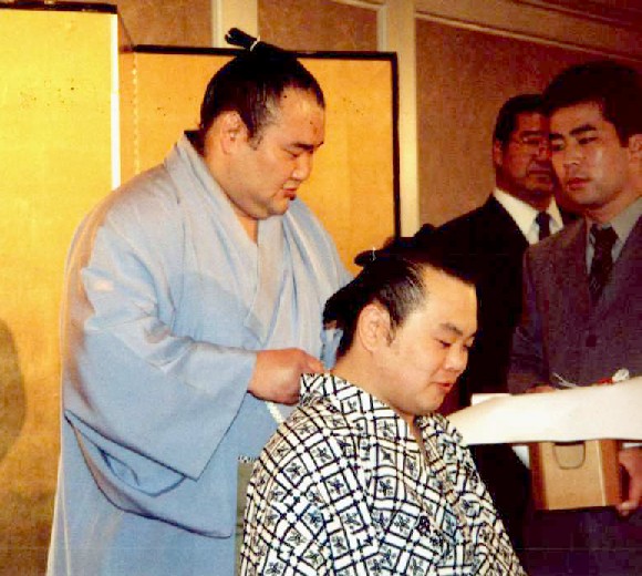 5月場所・伊勢ノ海部屋千秋楽での荒飛の断髪式 |