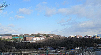 | 京田辺市在住の曽根様(S35年卒)から最近(2011年2月)の京田辺キャンパスの写真をお送りいただきました。題して「多々良キャンパスから眺めた京田辺キャンパス」です: | |||||||
