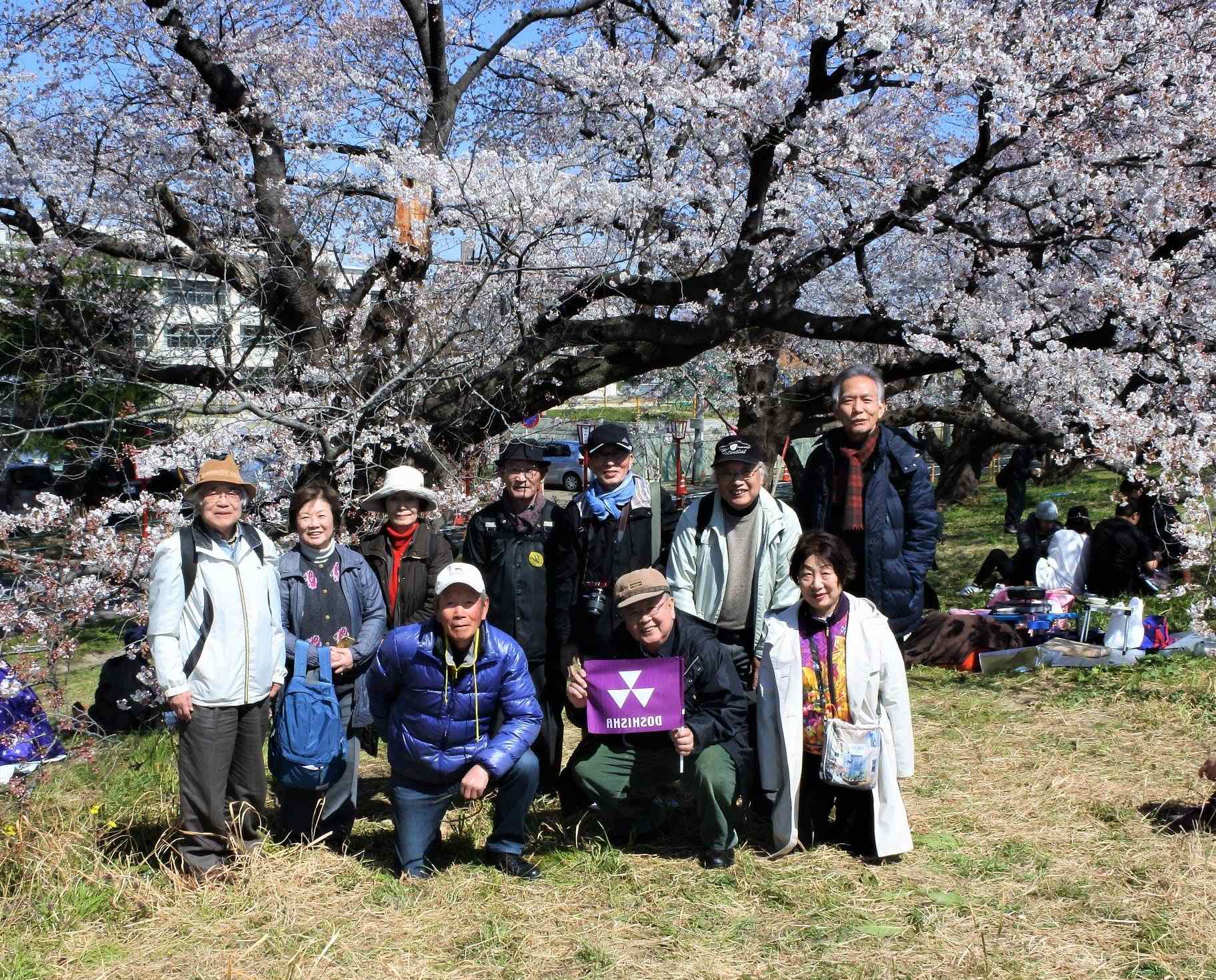 500本もの並木と菜の花の競演に魅せられた東京40会メンバー10名が、
