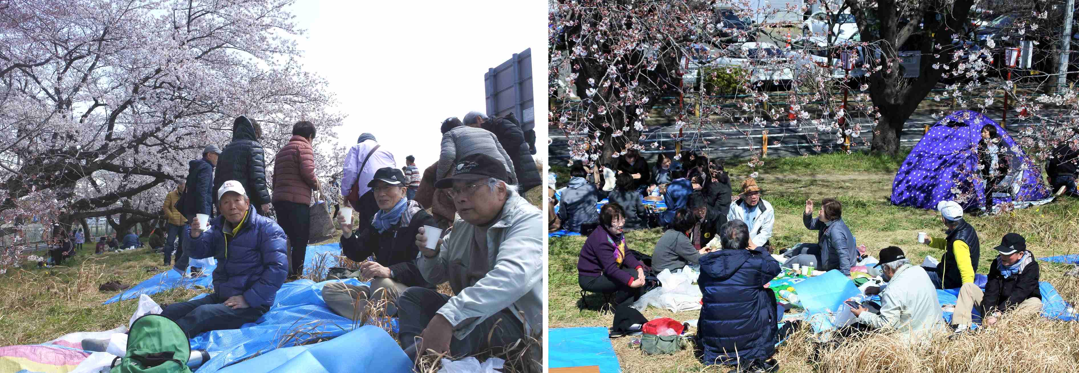 大声で騒ぐ酔っぱらいもいなくて、昔ながらののどかな花見風景がそこかしこに見られました。