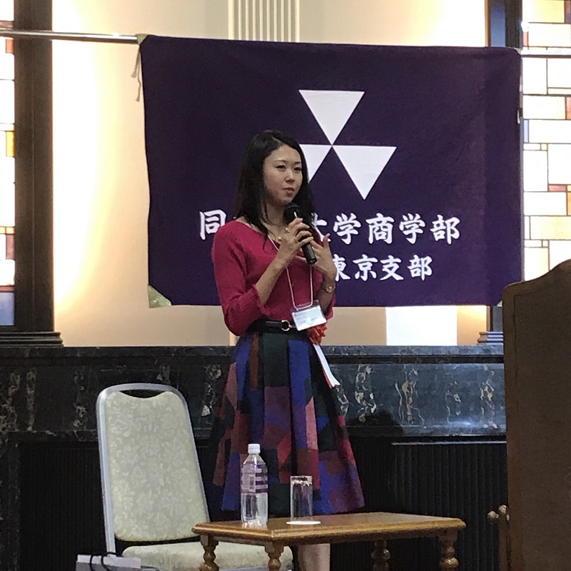 小林由梨奈様(H21年商学部卒業)に登壇いただき、東川副会長の当日のファッション、