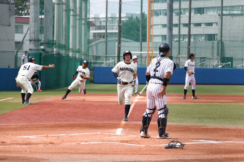 3回以降立ち直った立教投手陣の前に0行進の同志社を横目に、7・8回にも長打で追加点を取った立教。