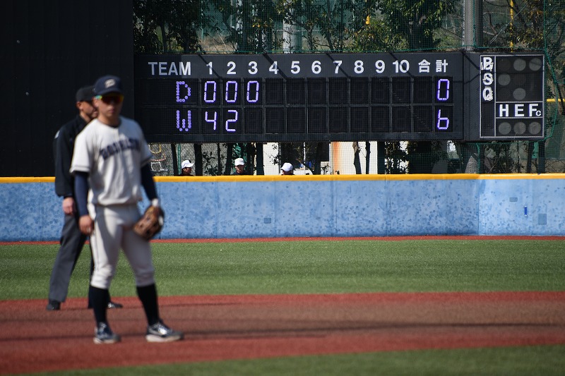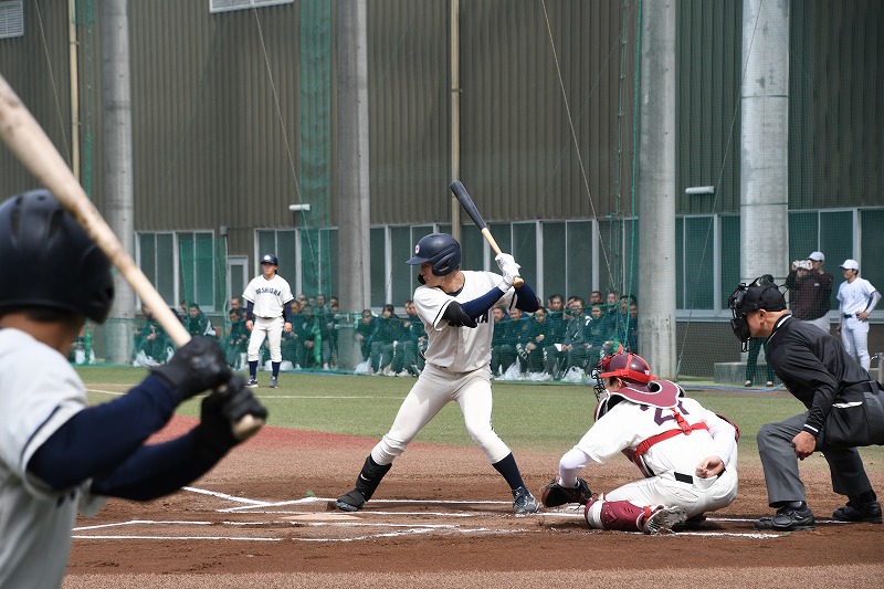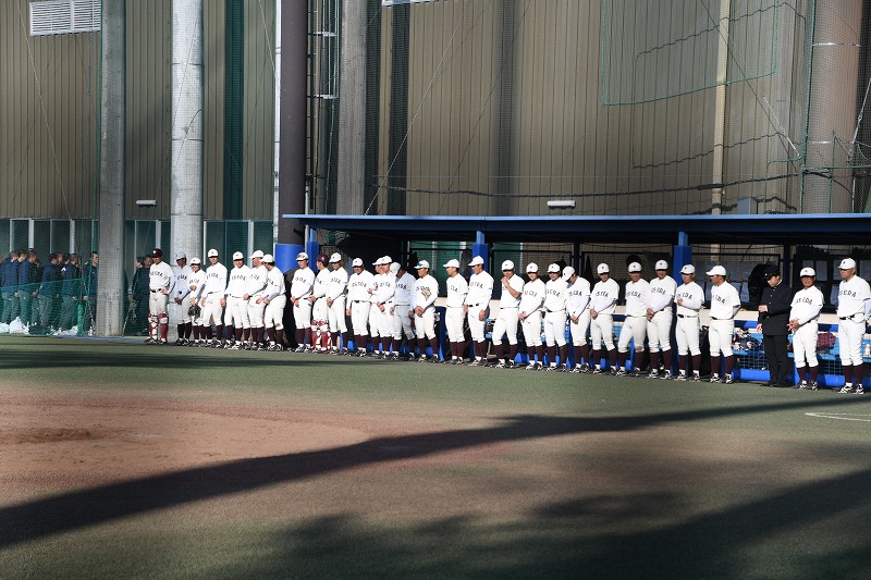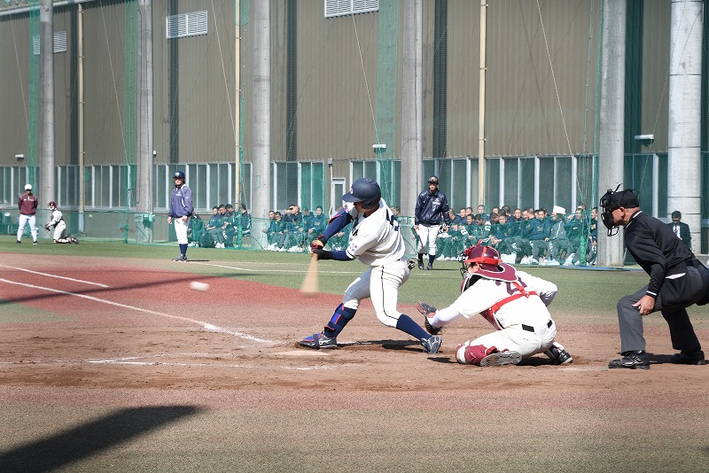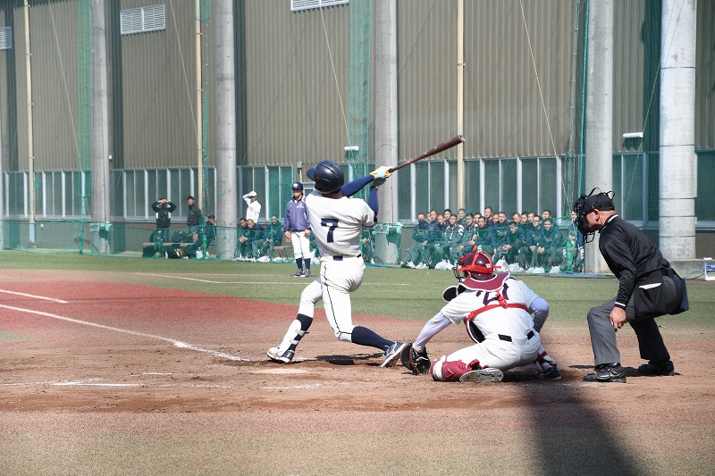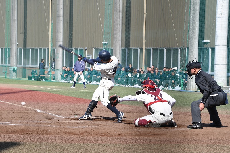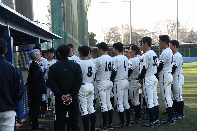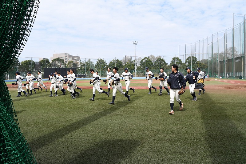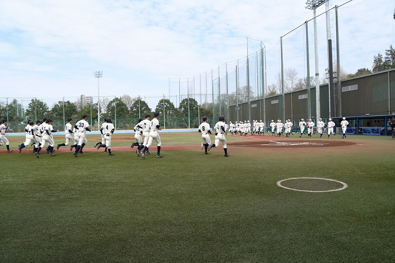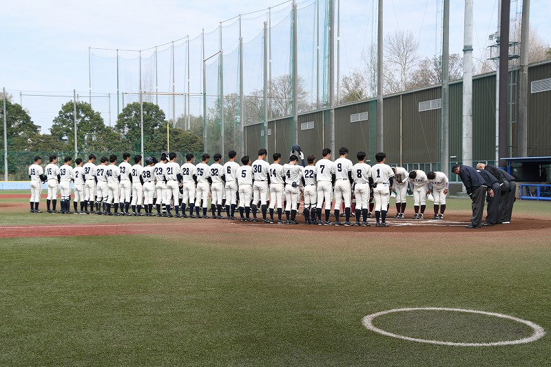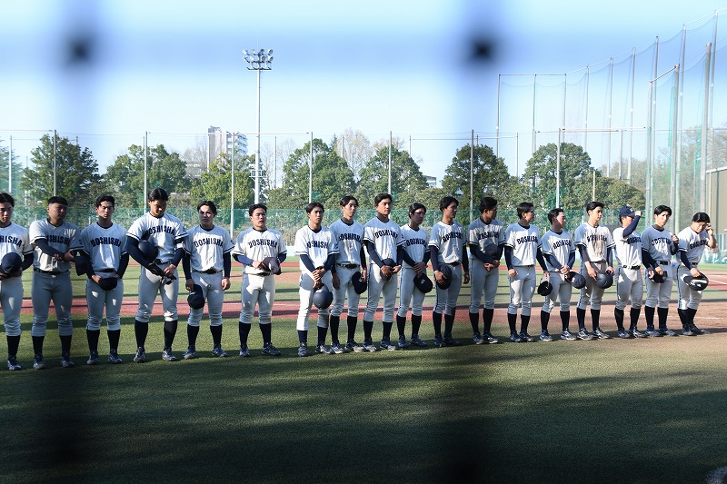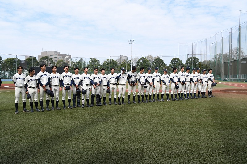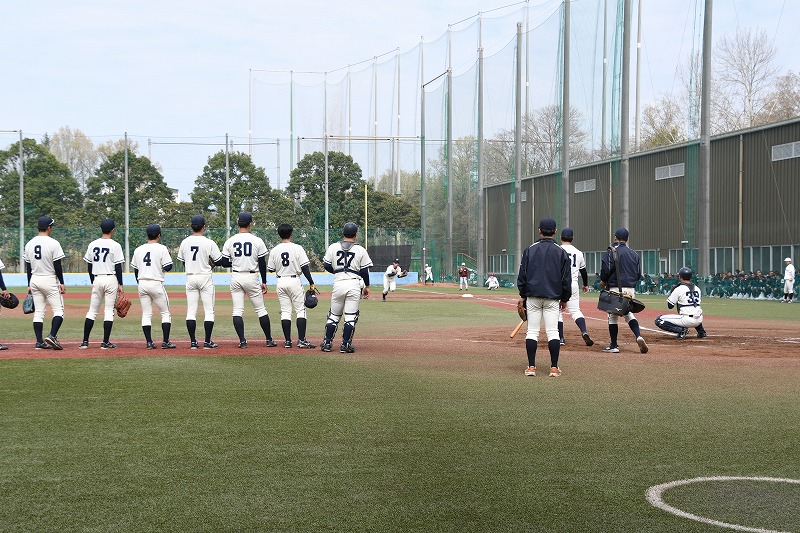 3月23日(月)、硬式野球部の早稲田大学定期戦(復活第13戦)が、早稲田大学東伏見キャンパスにある「安部磯雄記念野球場」で行われました。