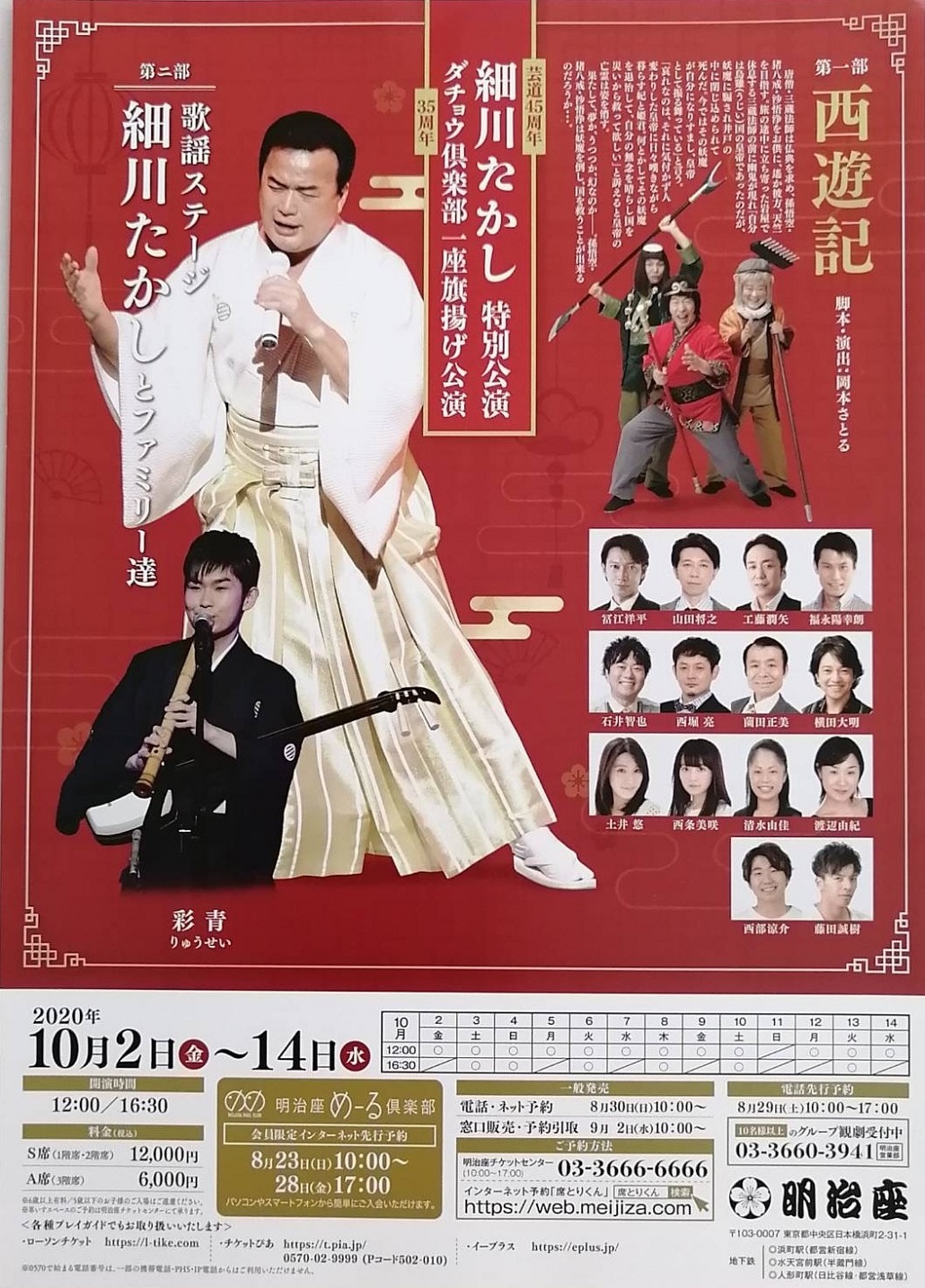 そんな中、出演させていただけることになりました10月の明治座さんでの舞台のご案内をさせていただきます。