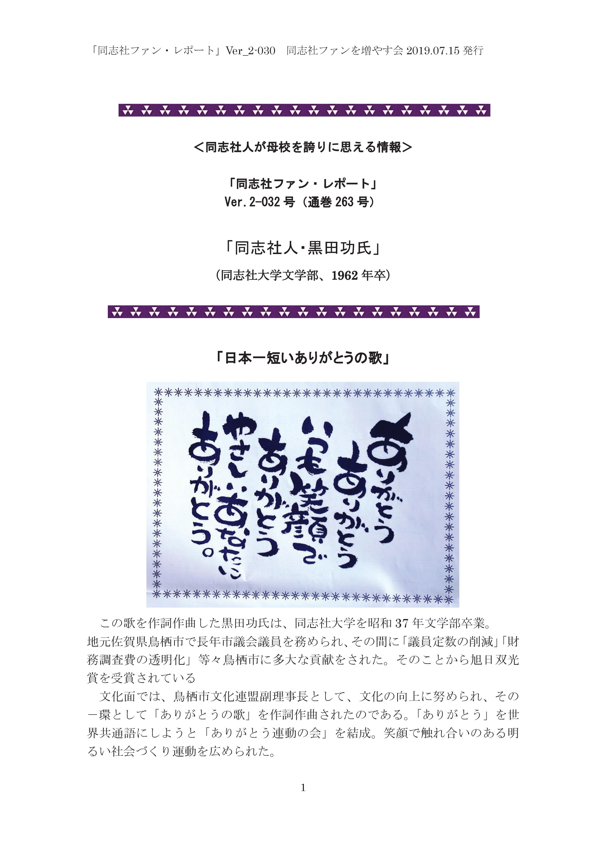 「同志社人・黒田功氏」 Ver.2-032 2019/7/15発行