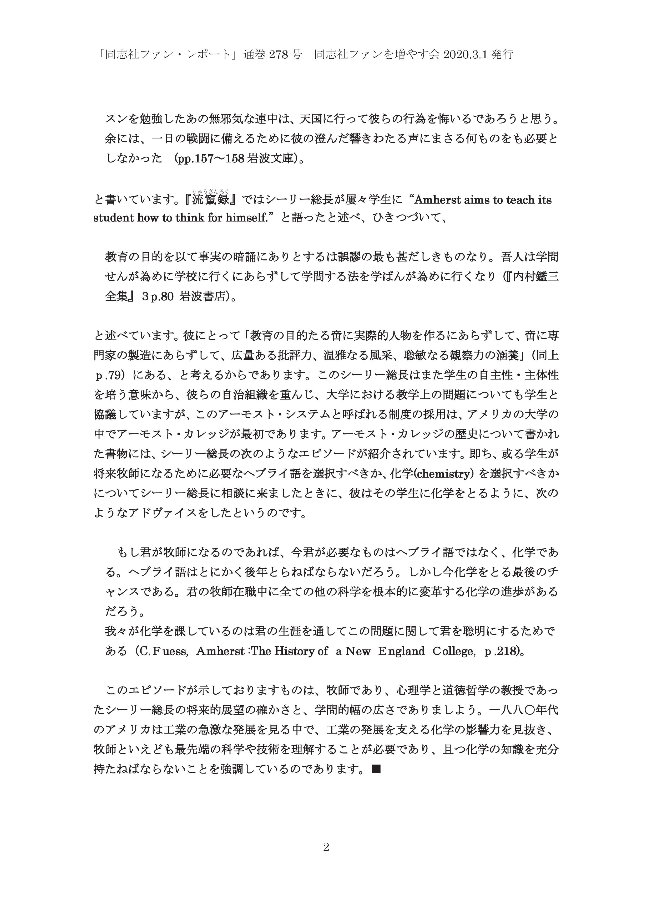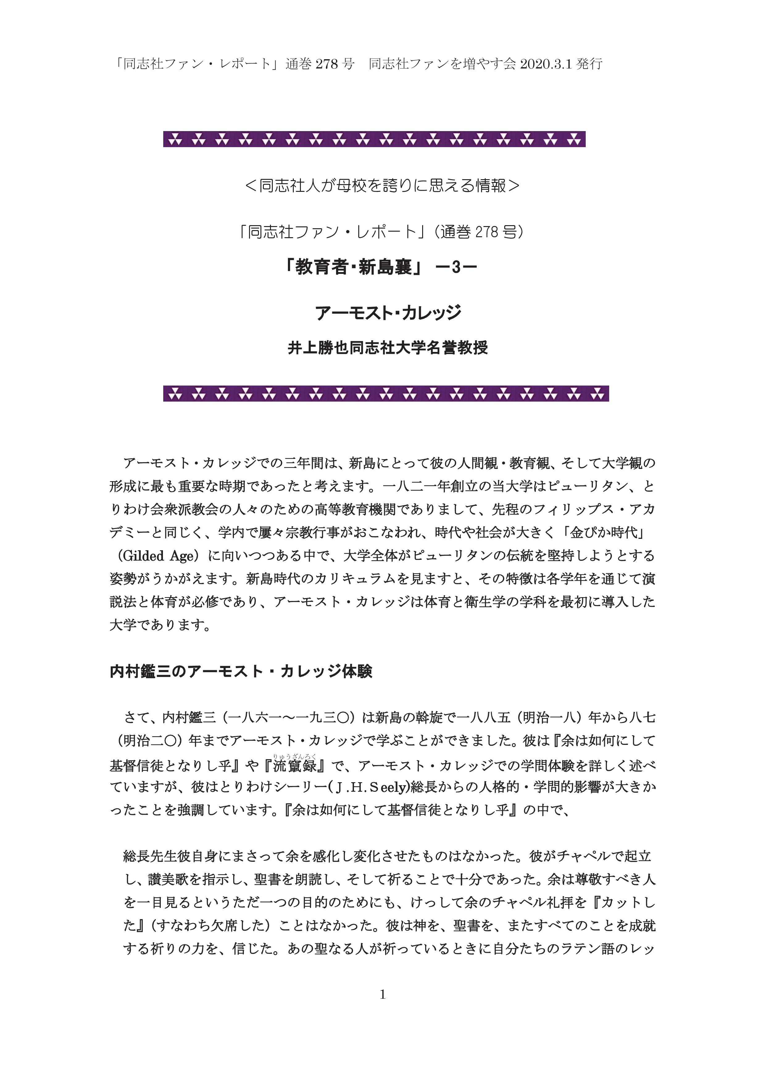「教育者・新島襄」 -3- 通巻278号 2020/3/1発行