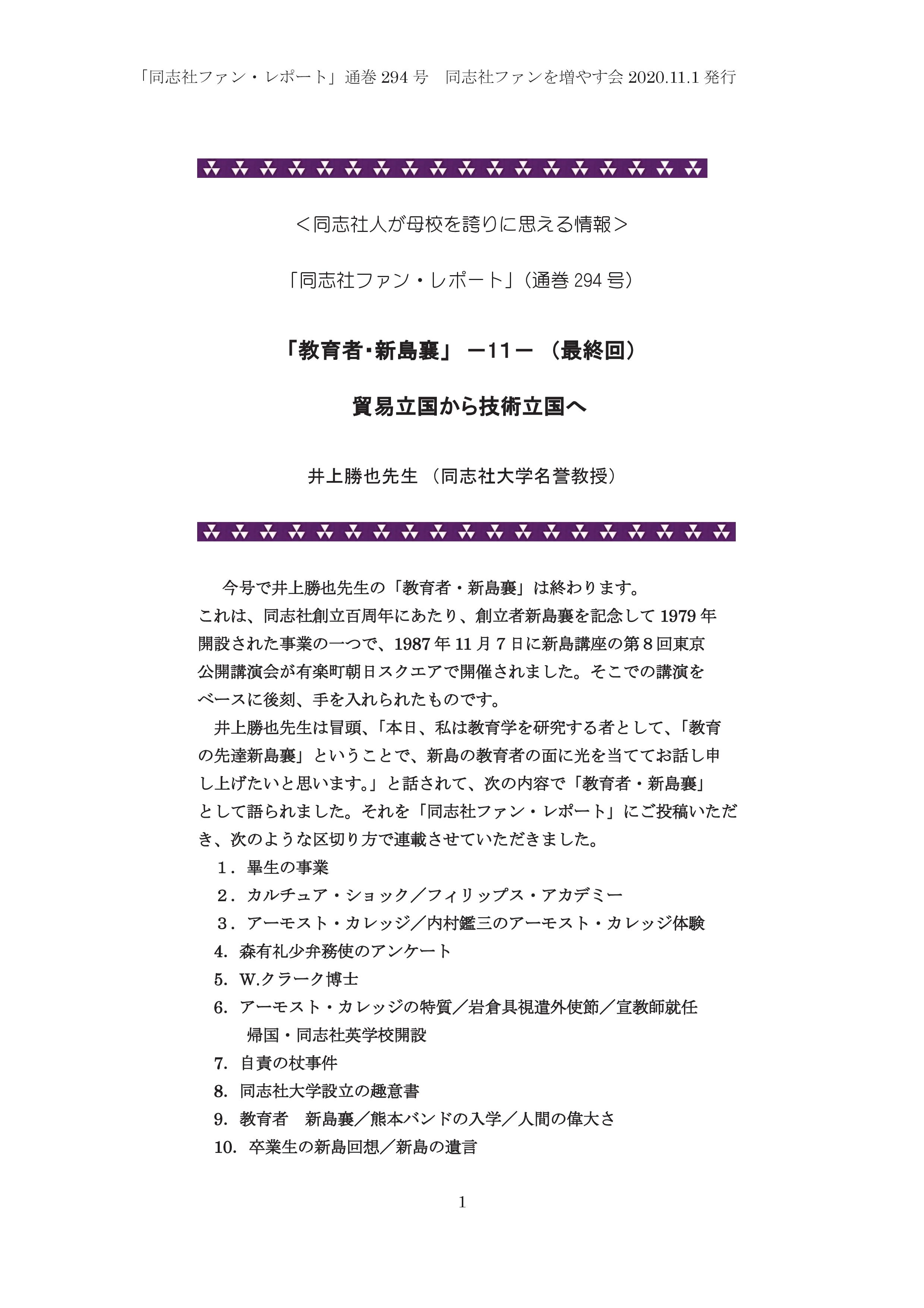 「教育者・新島襄」 -11- (最終回)  通巻294号 2020/11/1発行