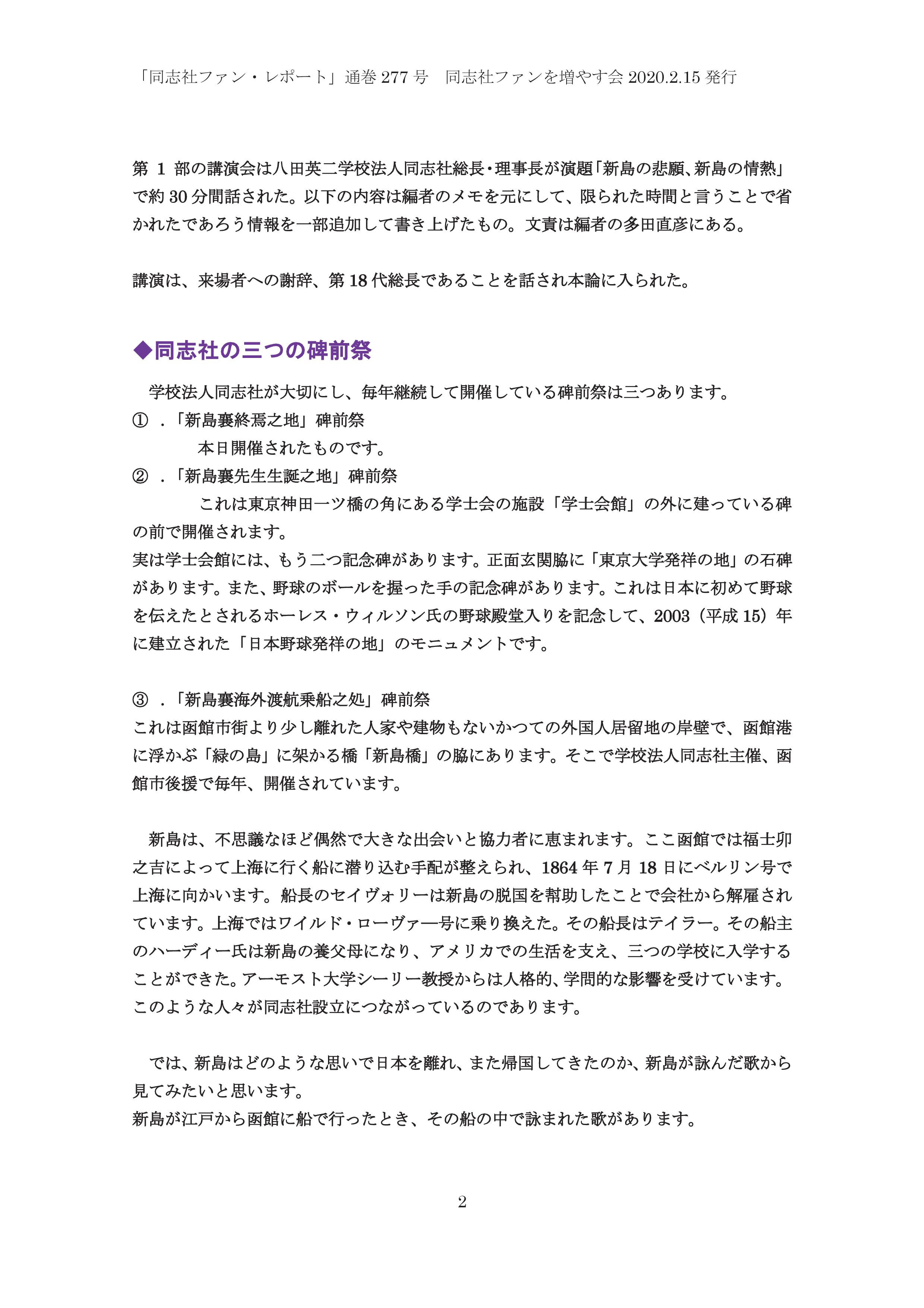 2. (通巻277号)「新島の悲願、新島の情熱」八田英二総長・理事長 -002