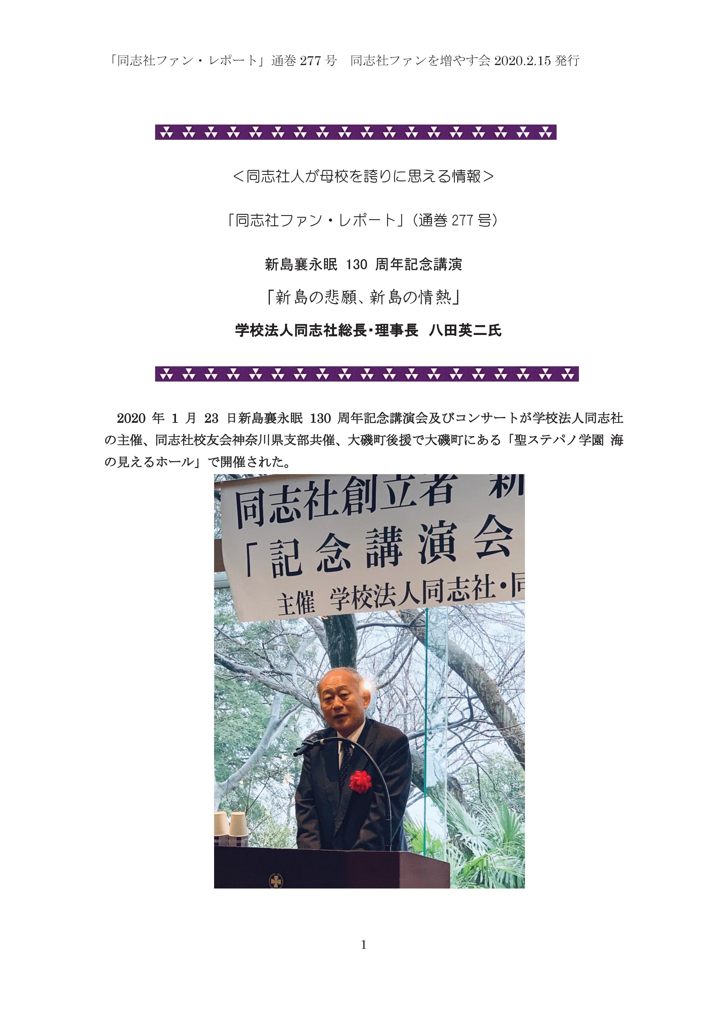(通巻277号)「新島の悲願、新島の情熱」八田英二総長・理事長 -001