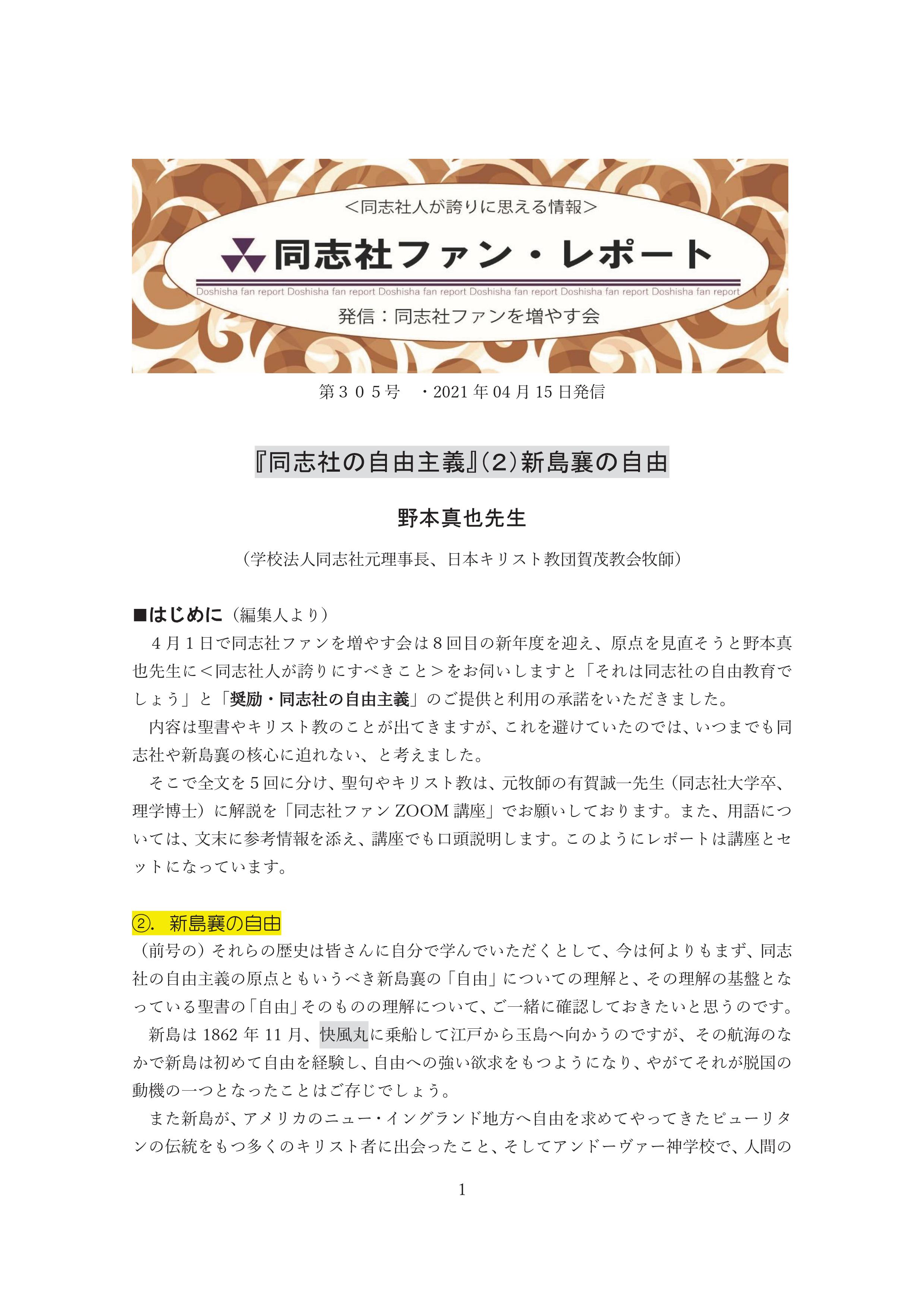 『同志社の自由主義』(2)学問の自由 通巻305号 2021/4/15発行
