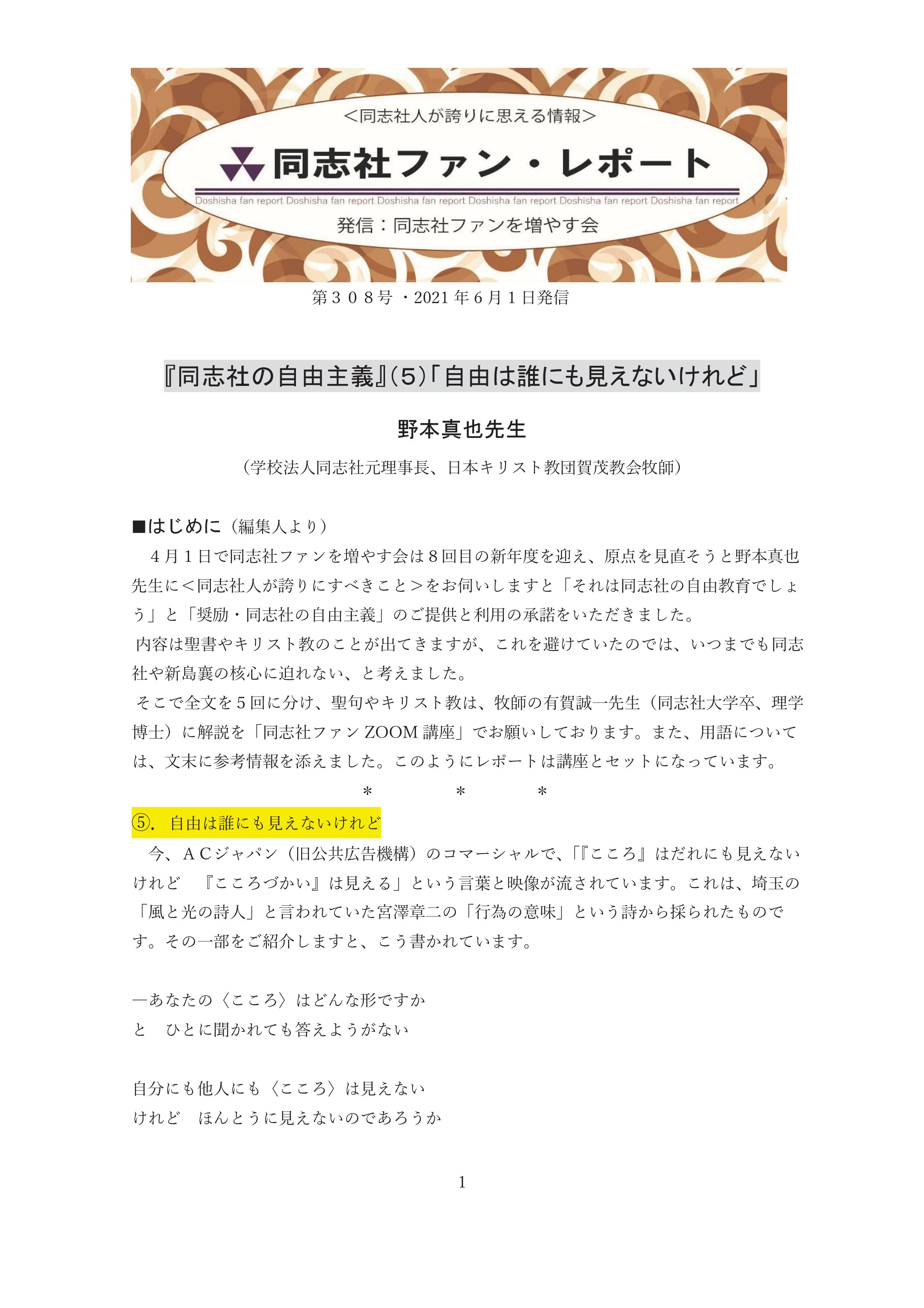 4. 『同志社の自由主義』(5)「自由は誰にも見えないけれど」 通巻308号 2021/6/1
