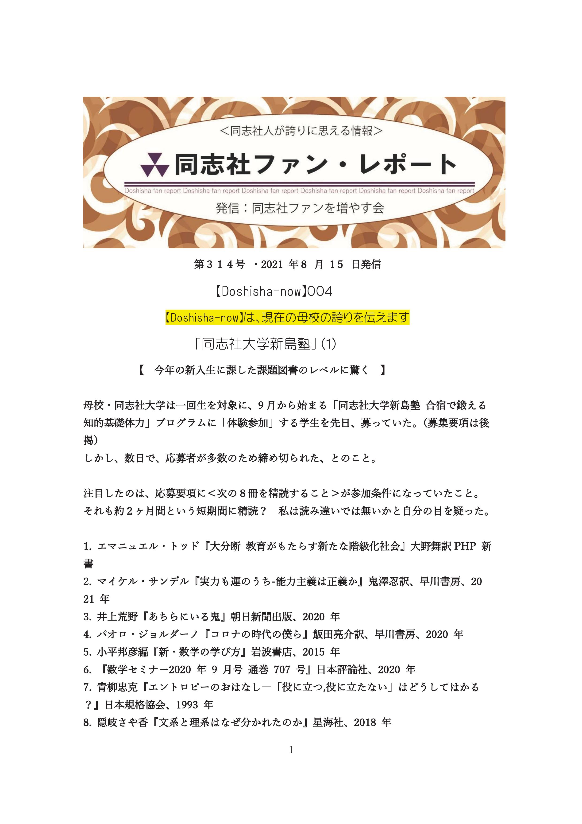 【Doshisha-now】 №004 「同志社大学新島塾」(1)~ 通巻314号 2021/8/15