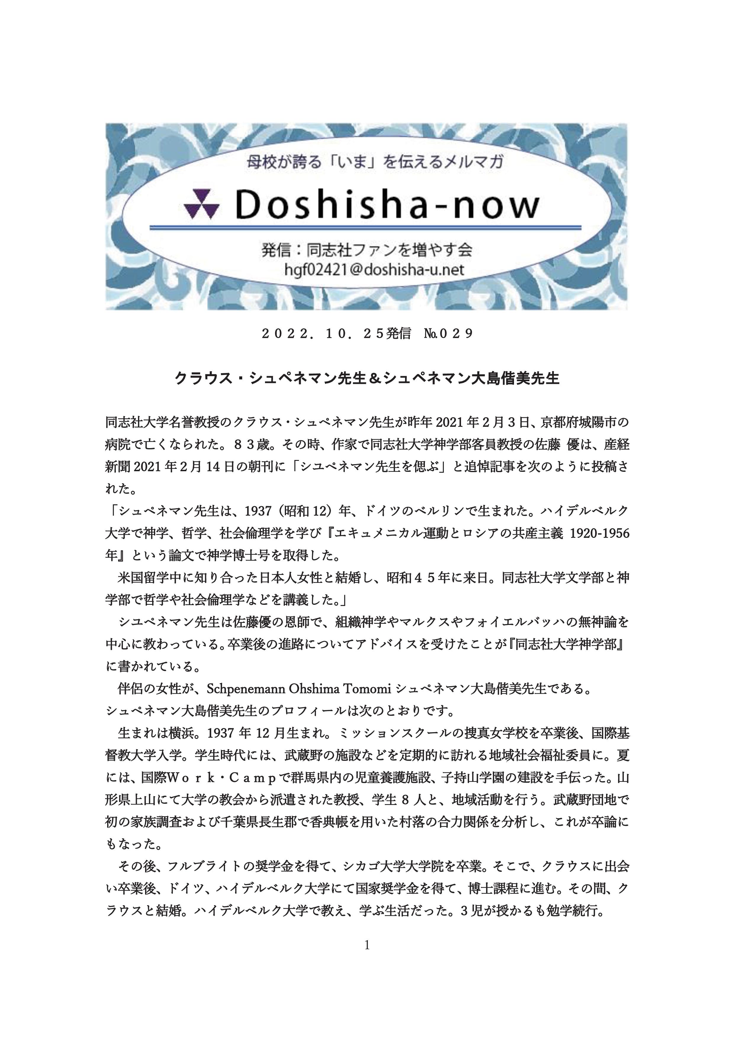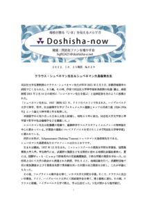 2. 2022.10.25発信【Doshisha-now】№029 クラウス・シュペネマン先生&シュペネマン大島偕美先生-01