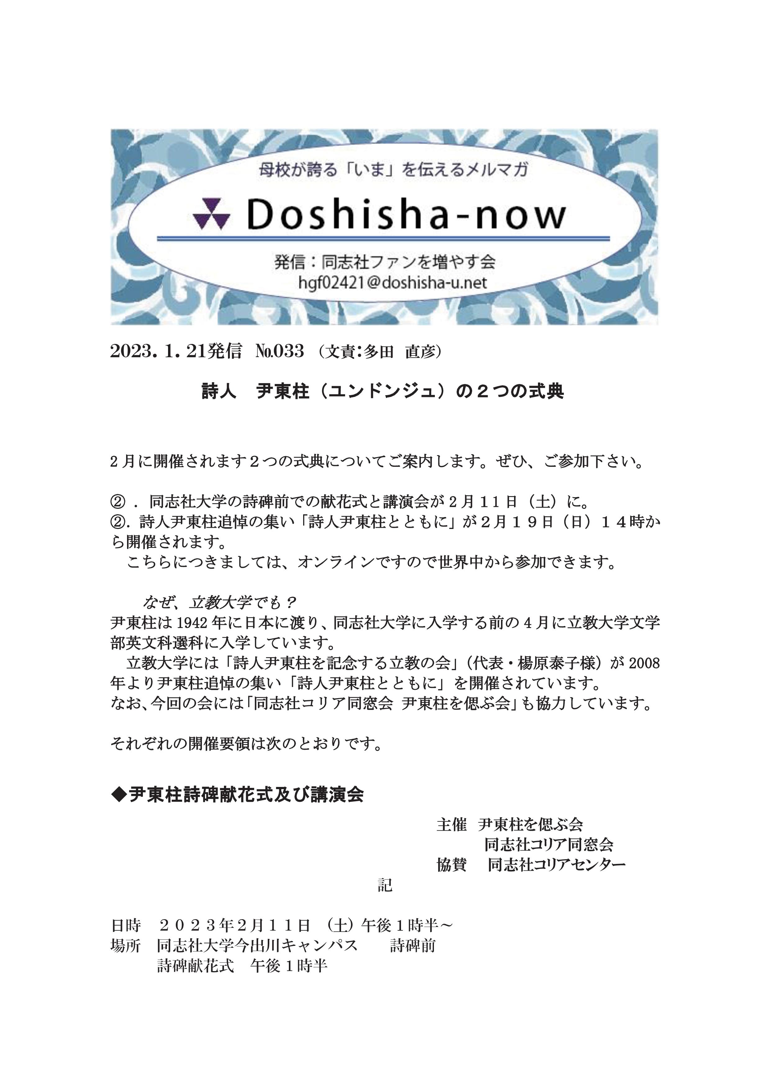 【Doshisha-now】 №033 詩人 尹東柱(ユンドンジュ)の2つの式典