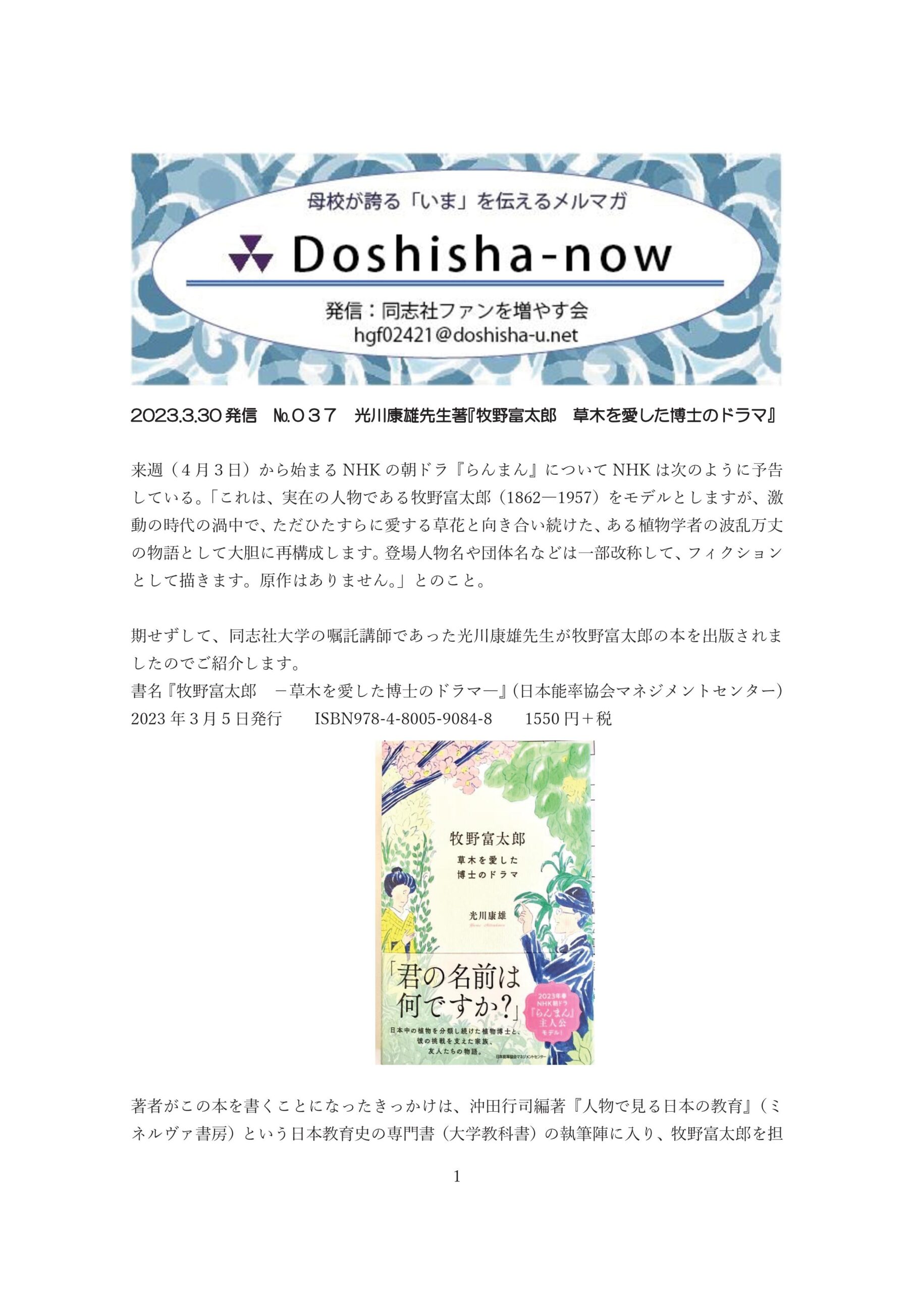 *20230330発信№037光川康雄著『牧野富太郎-草木を愛した博士のドラマ-』-01