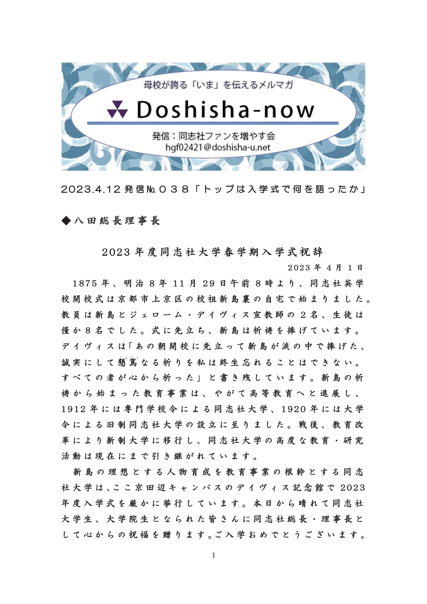 【Doshisha-now】 №038 「トップは入学式で何を語ったか」