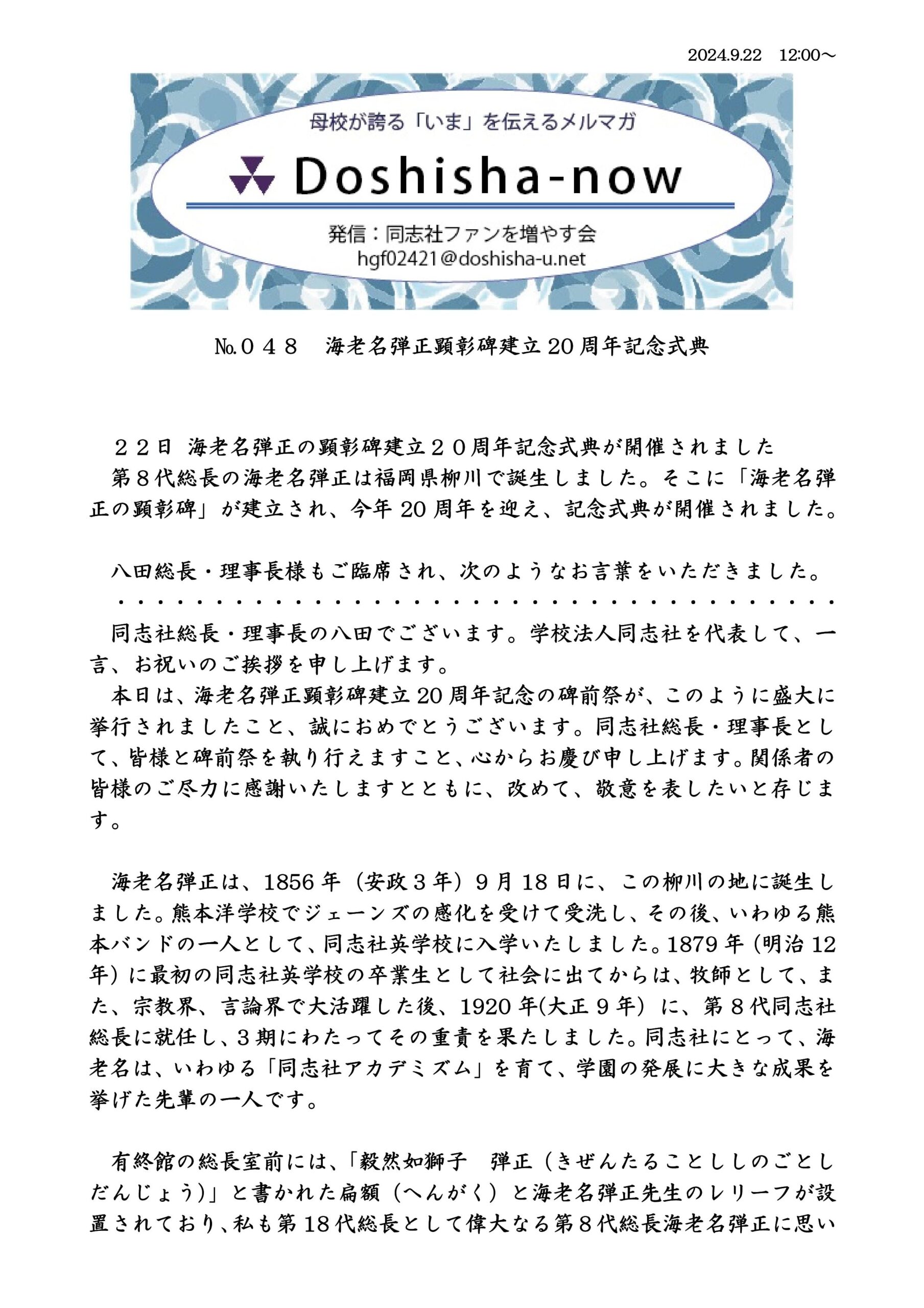 【Doshisha-now】 №048 海老名弾正顕彰碑建立20周年記念式典