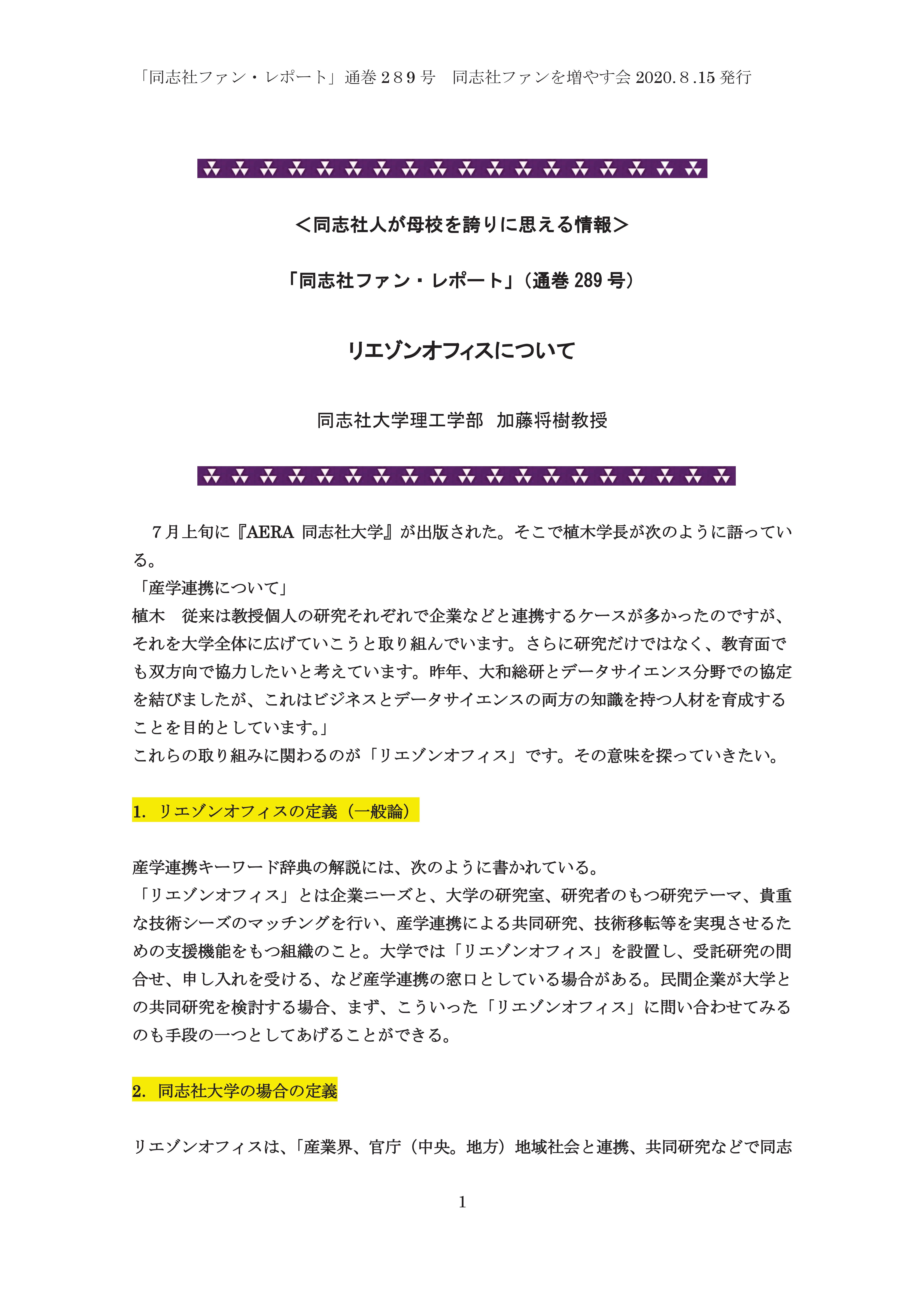 リエゾンオフィスについて 通巻289号 2020/8/15発行