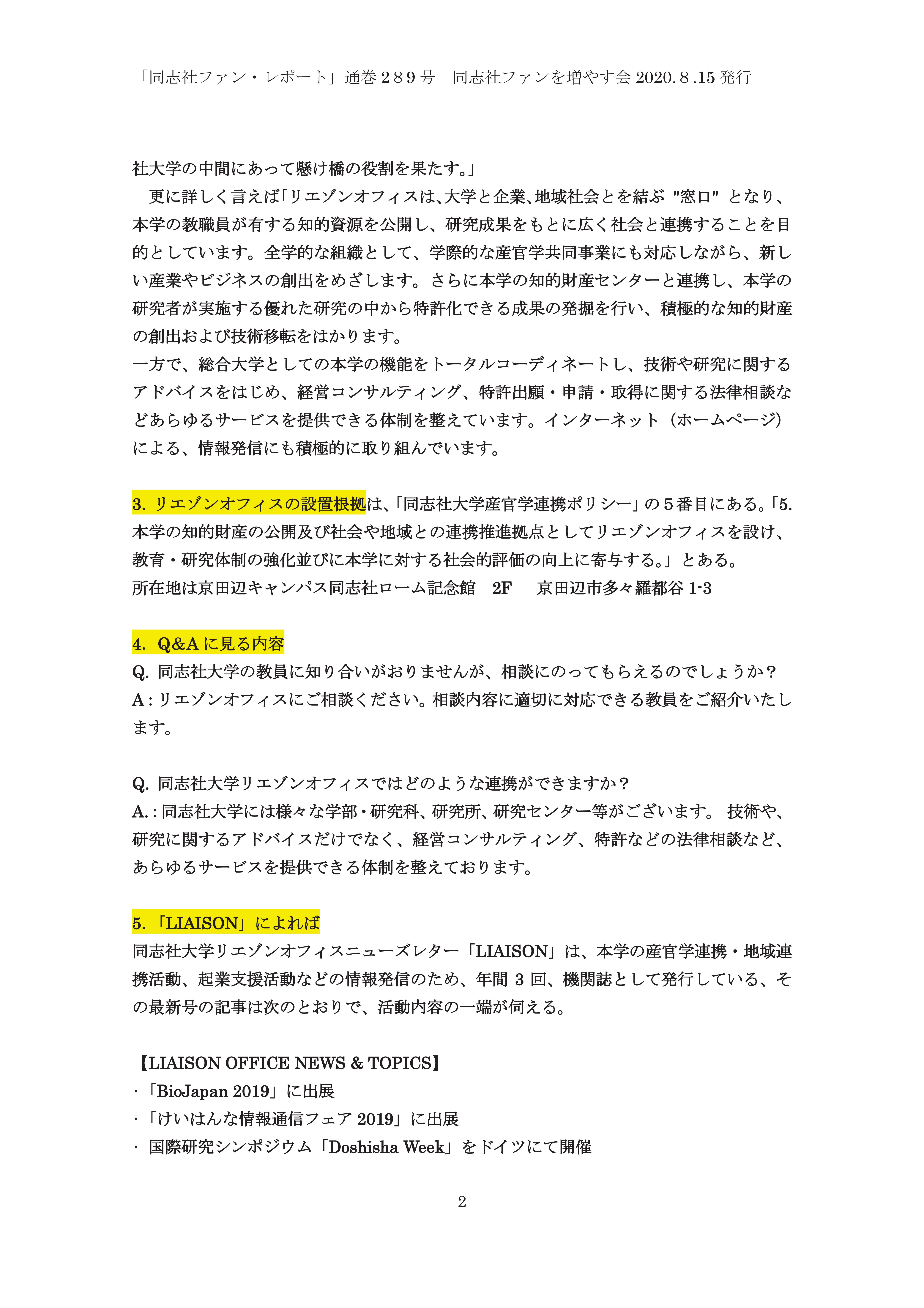 4. リエゾンオフィスについて 通巻289号 2020/8/15発行