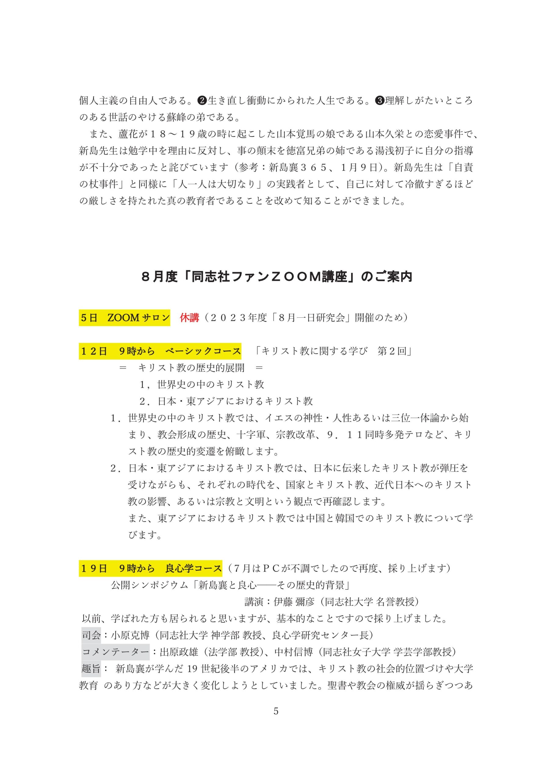2024年の「同志社ファンZOOM講座」の案内
