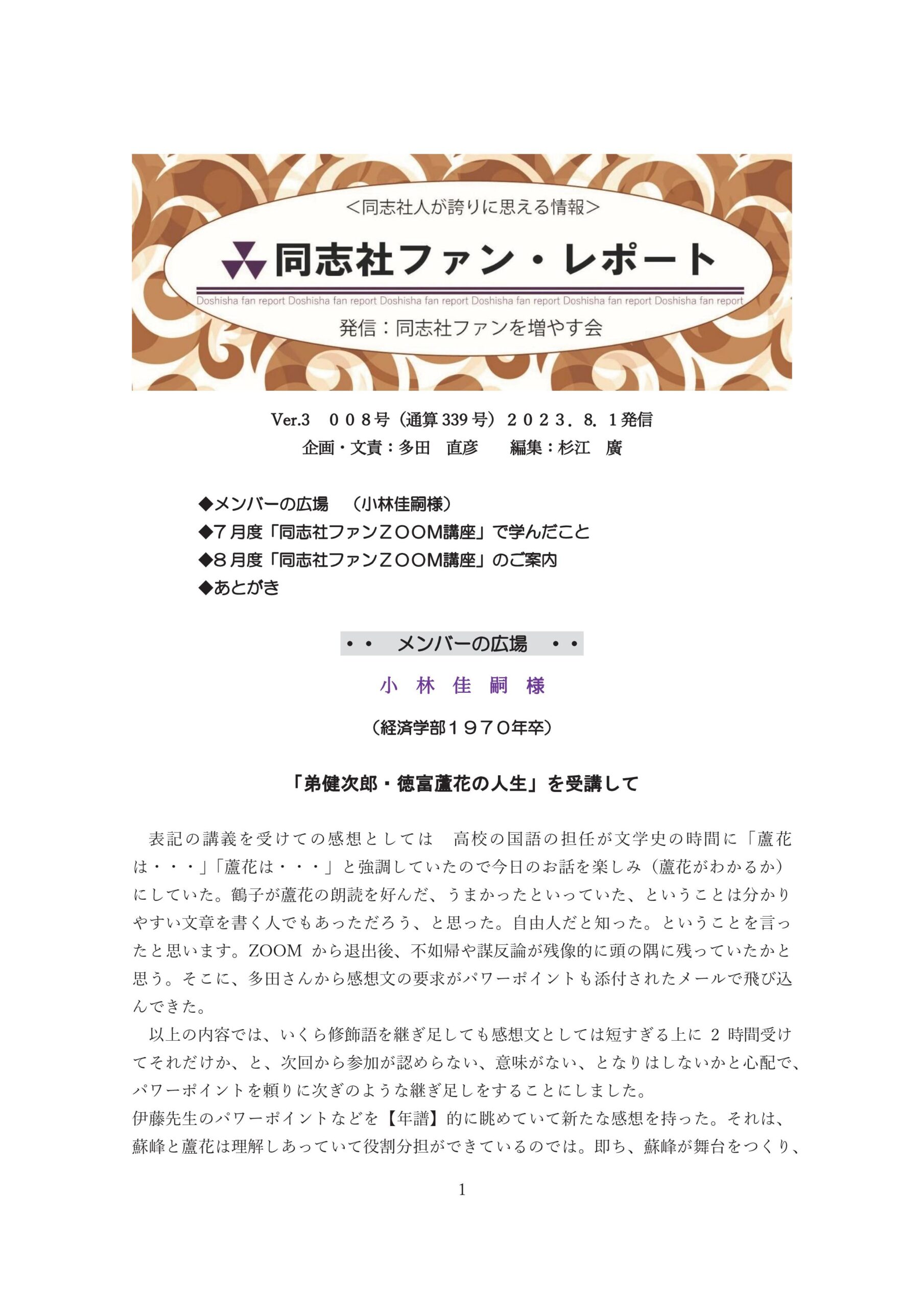 同志社ファン・レポート Ver.3 008号(通算339号)2023/8/1