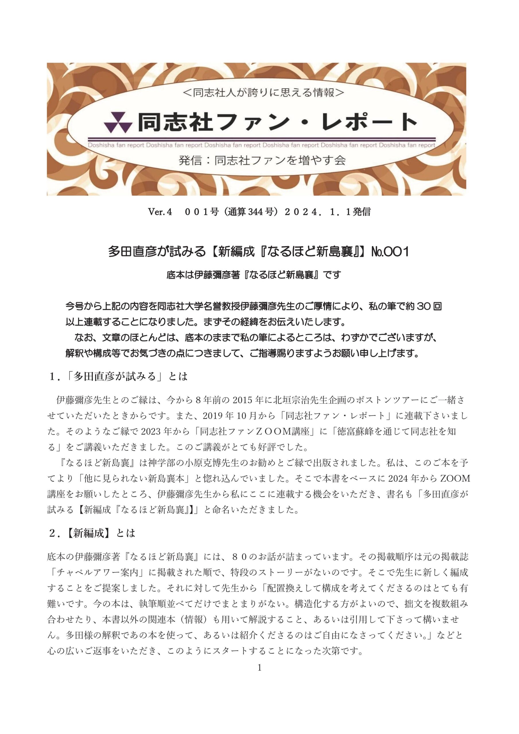 同志社ファン・レポート Ver.4 001号(通算344号)2024/1/1