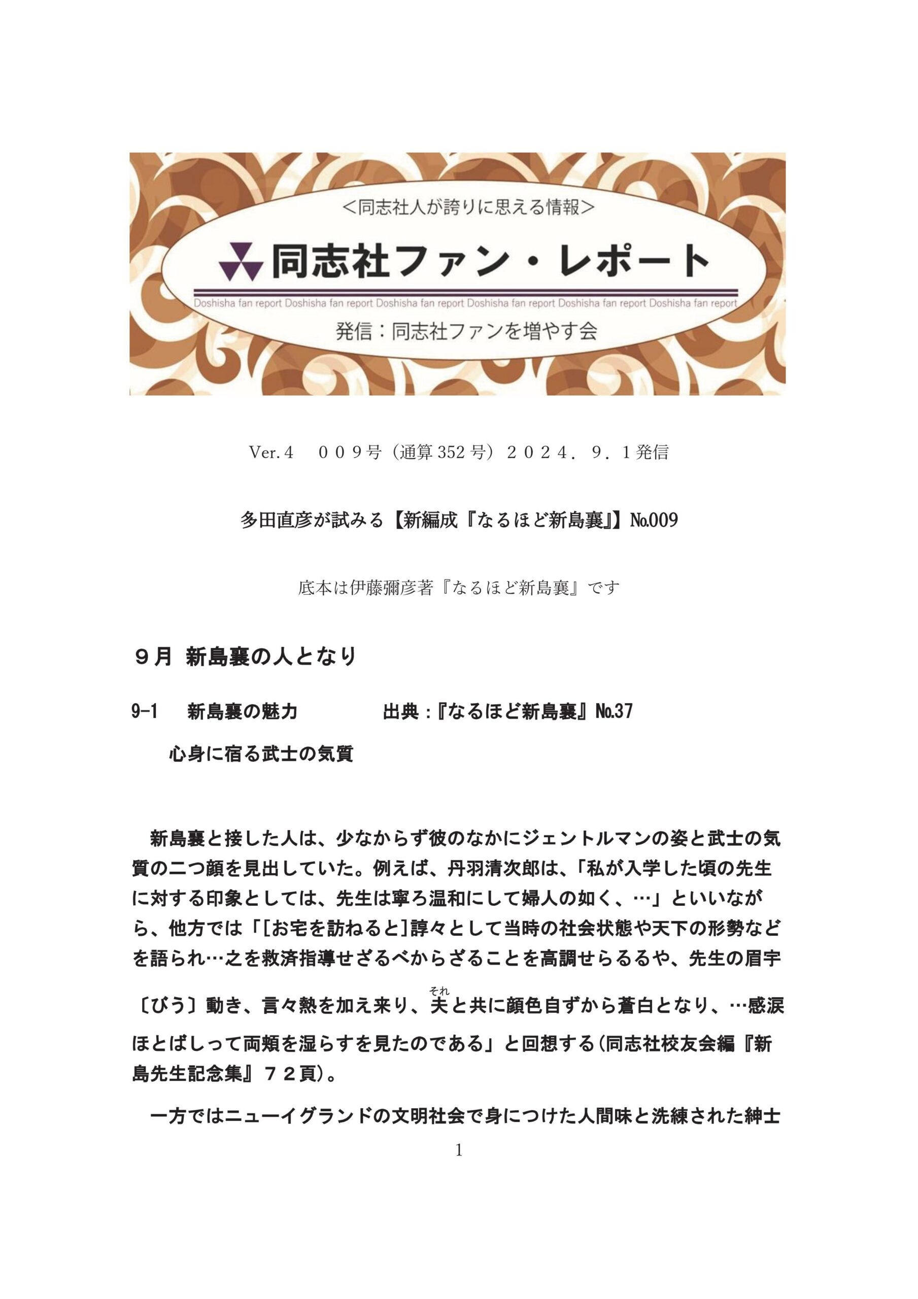 同志社ファン・レポート Ver.4 009号(通算352号)2024/9/1