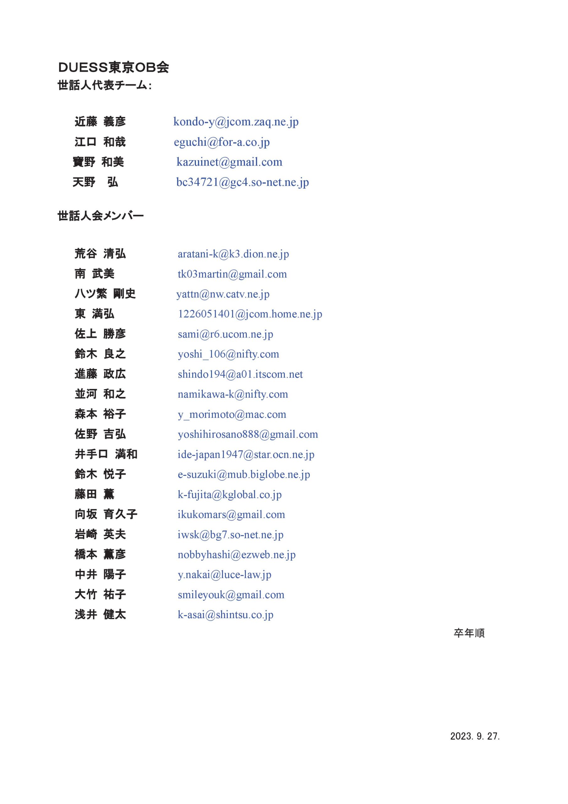 2022年D.U.E.S.S.創部100周年記念東京OB会のご案内