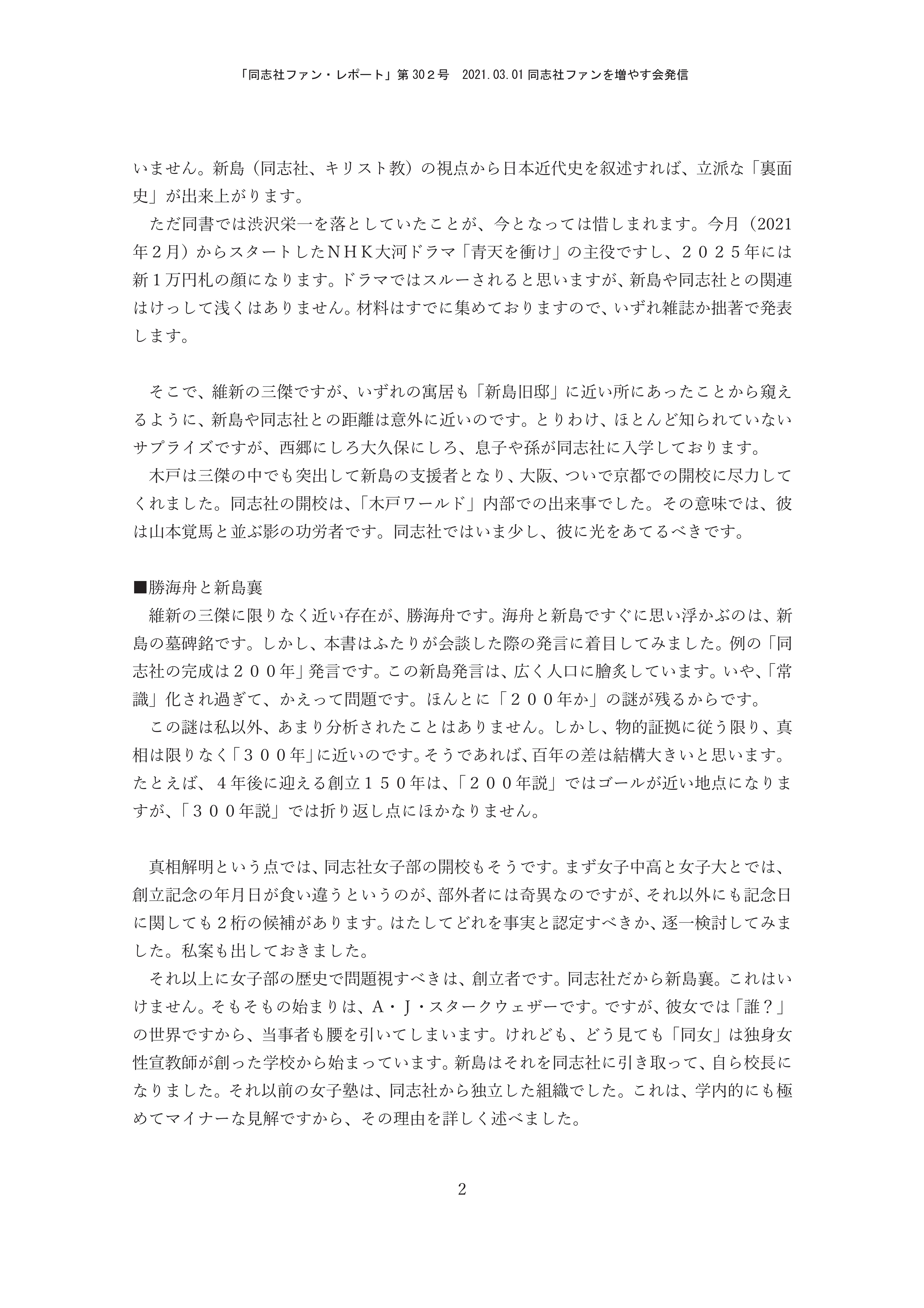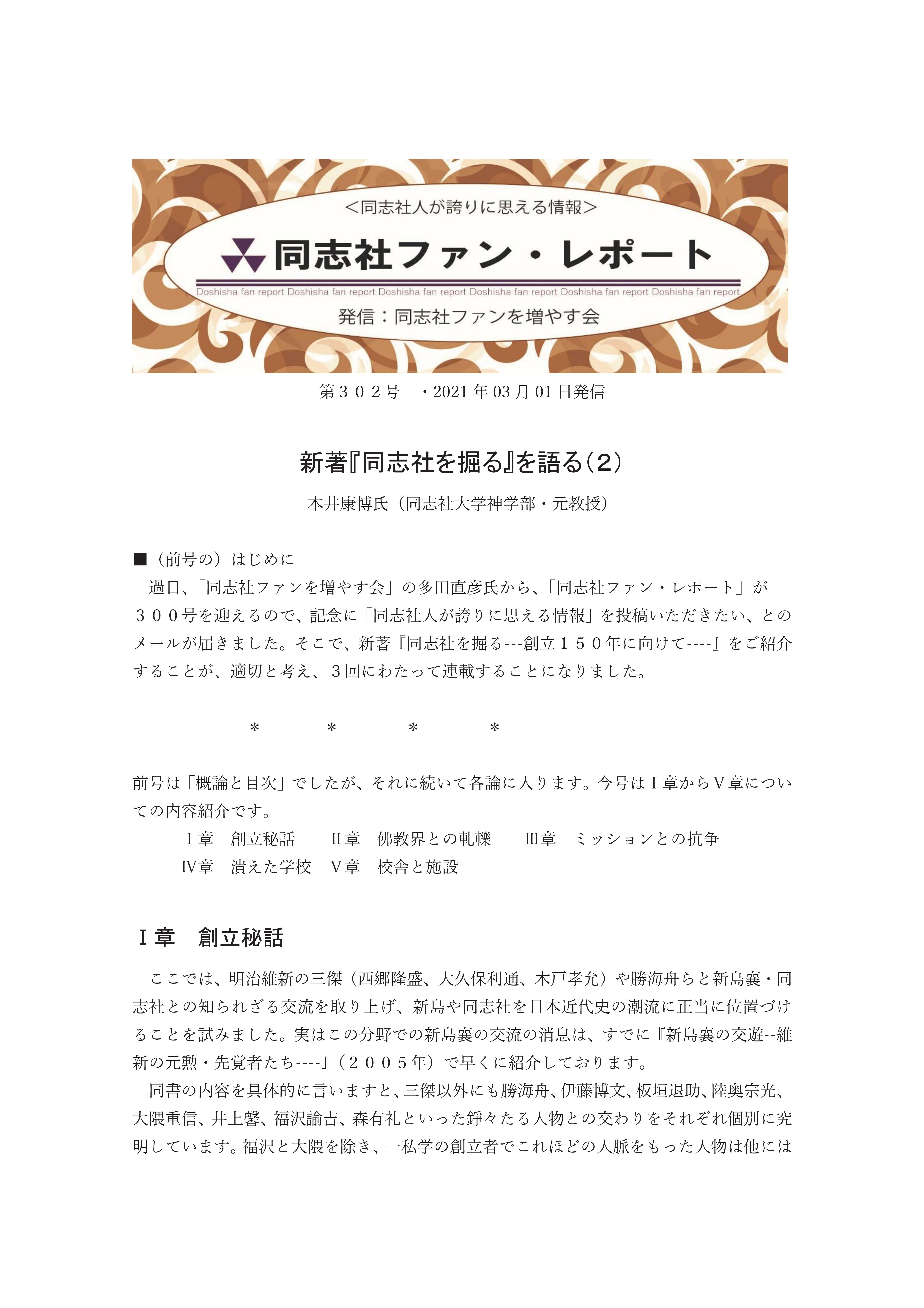 新著『同志社を掘る』を語る(2) 通巻302号 2021/3/1発行