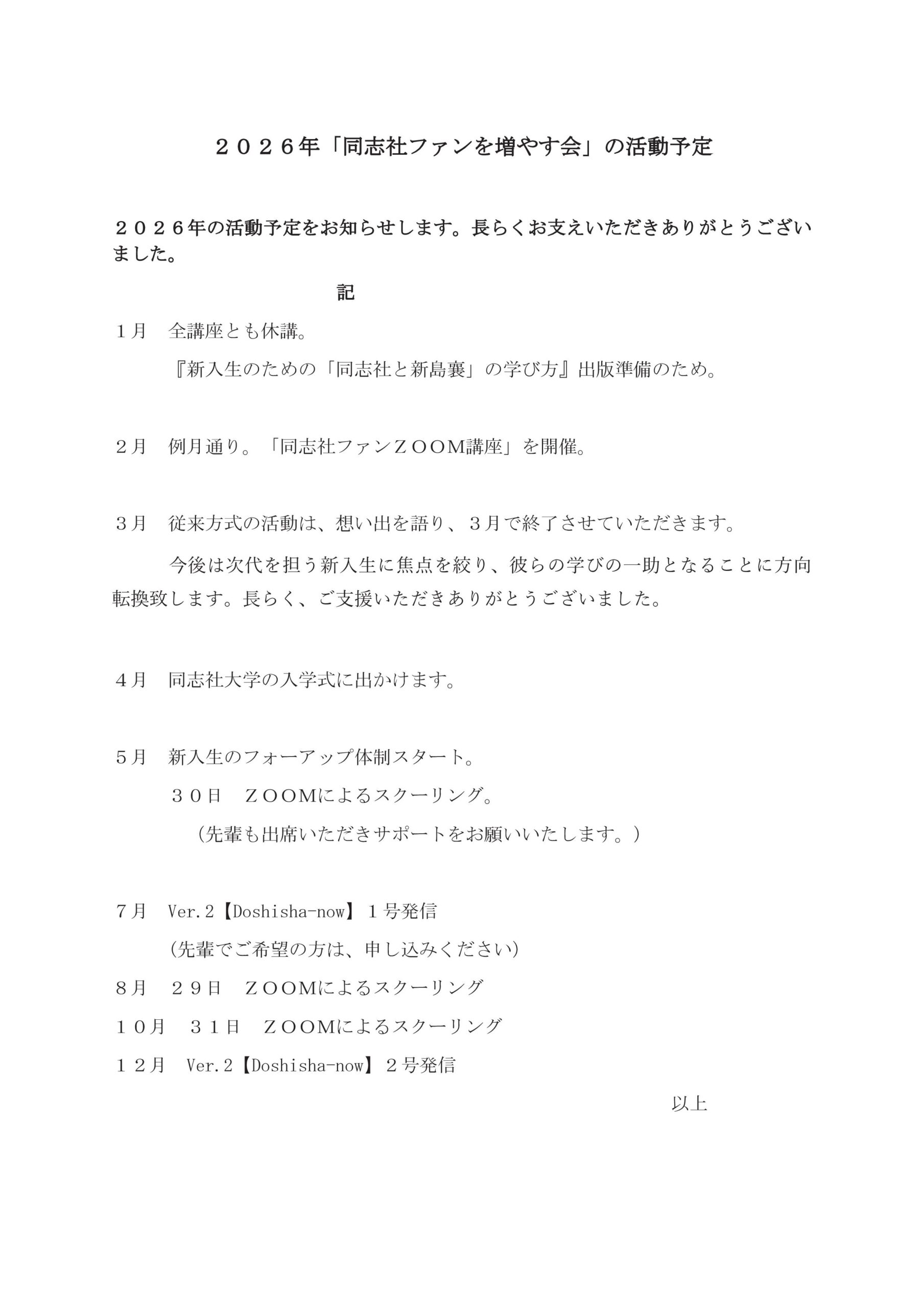 2026年2月 「同志社ファンを増やす会」の活動予定