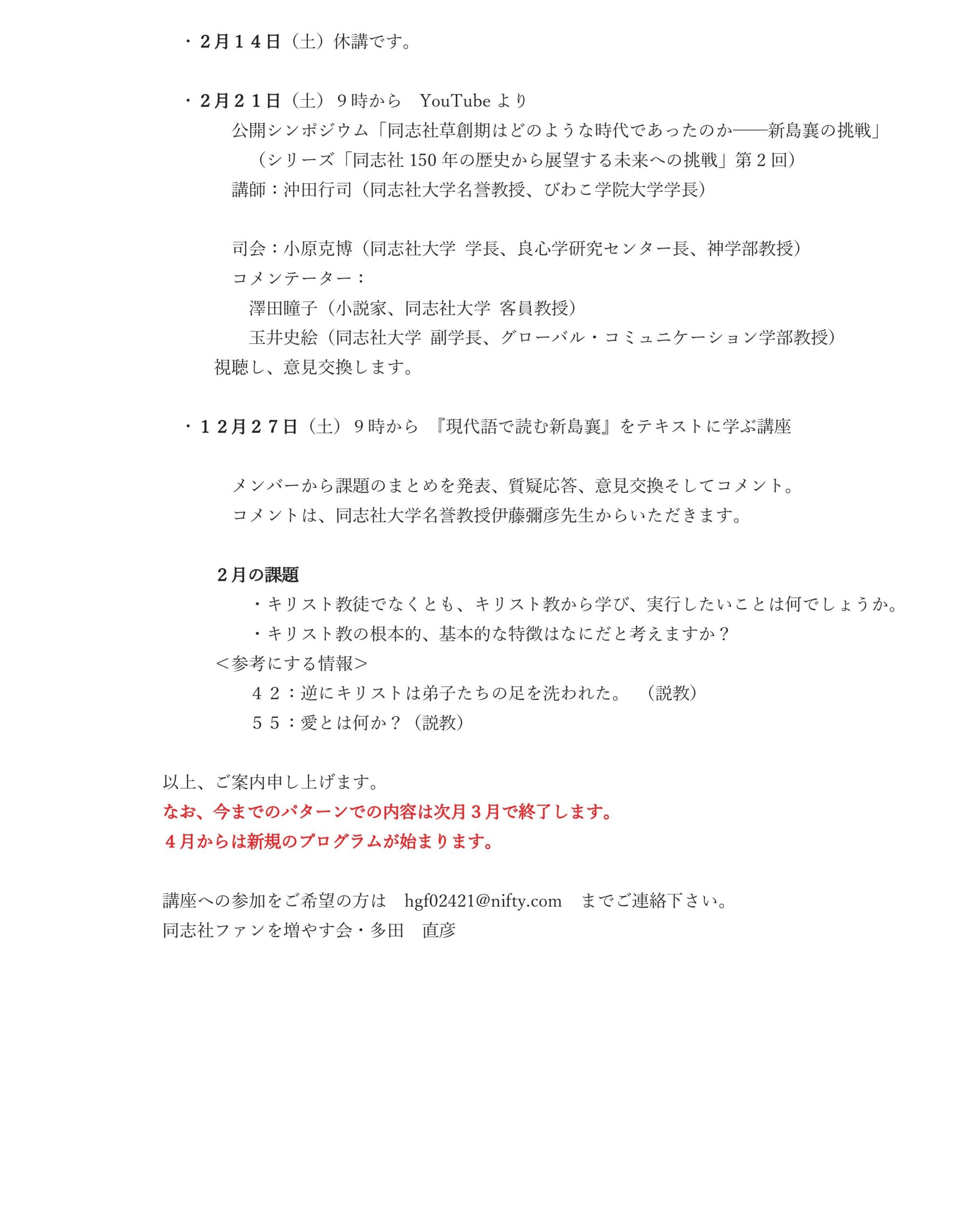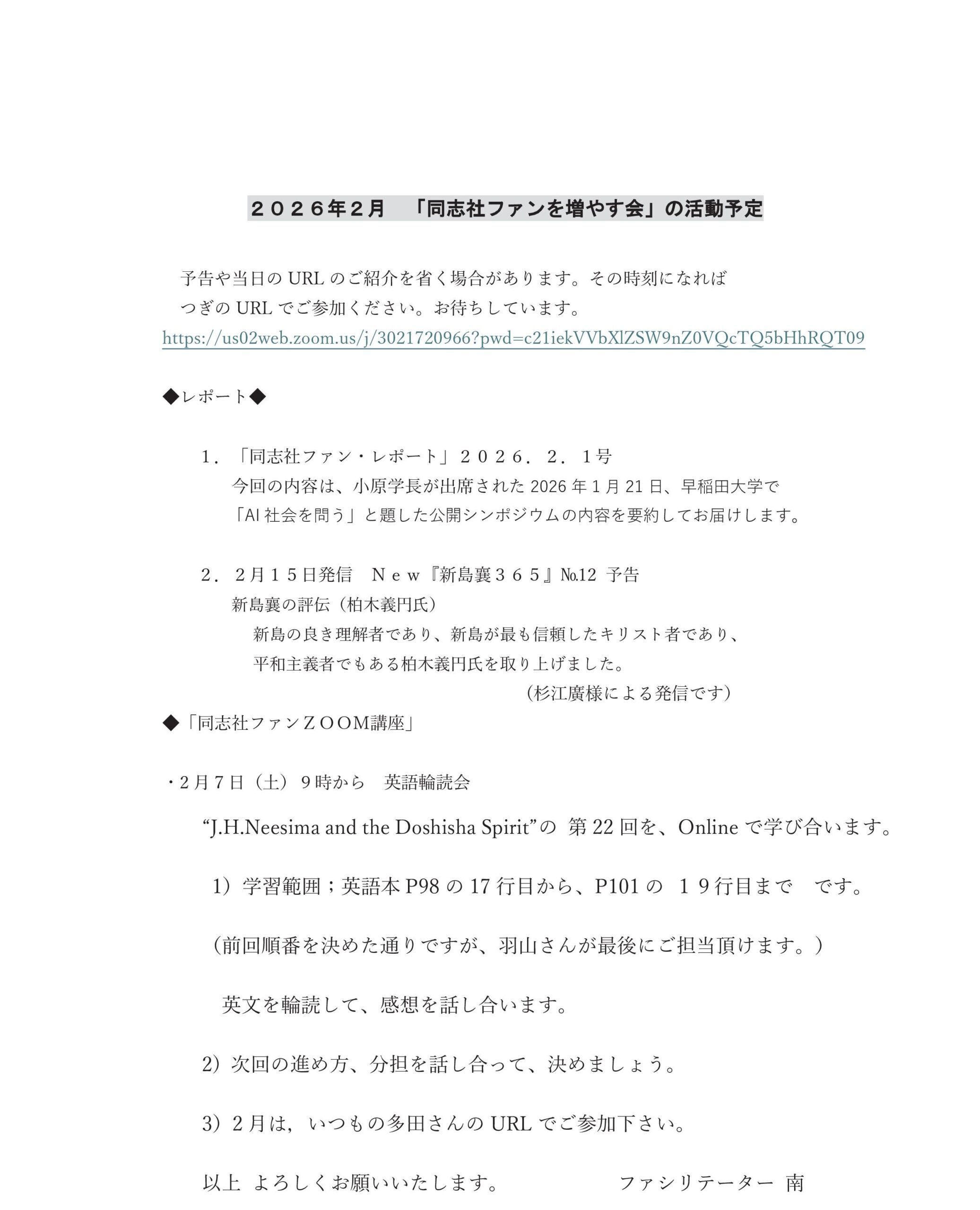 4. 2026年2月 「同志社ファンを増やす会」の活動予定