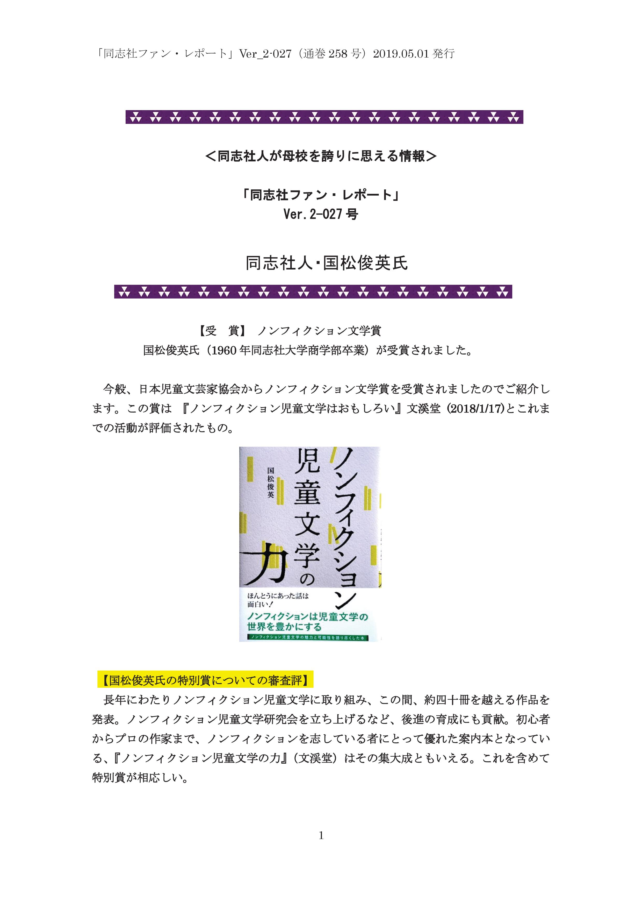 4. 同志社人・国松俊英氏 Ver.2-027 2019/5/1発行
