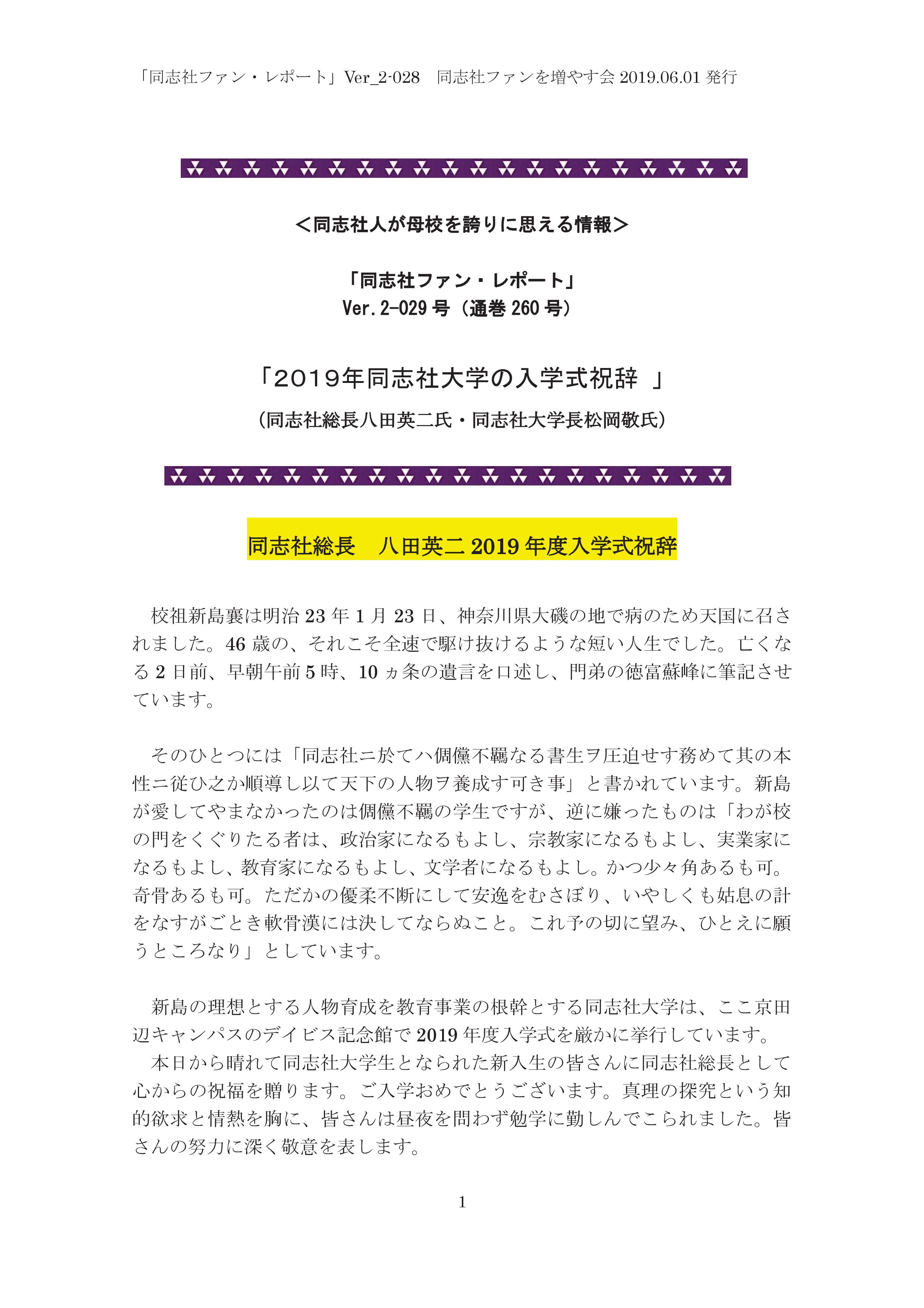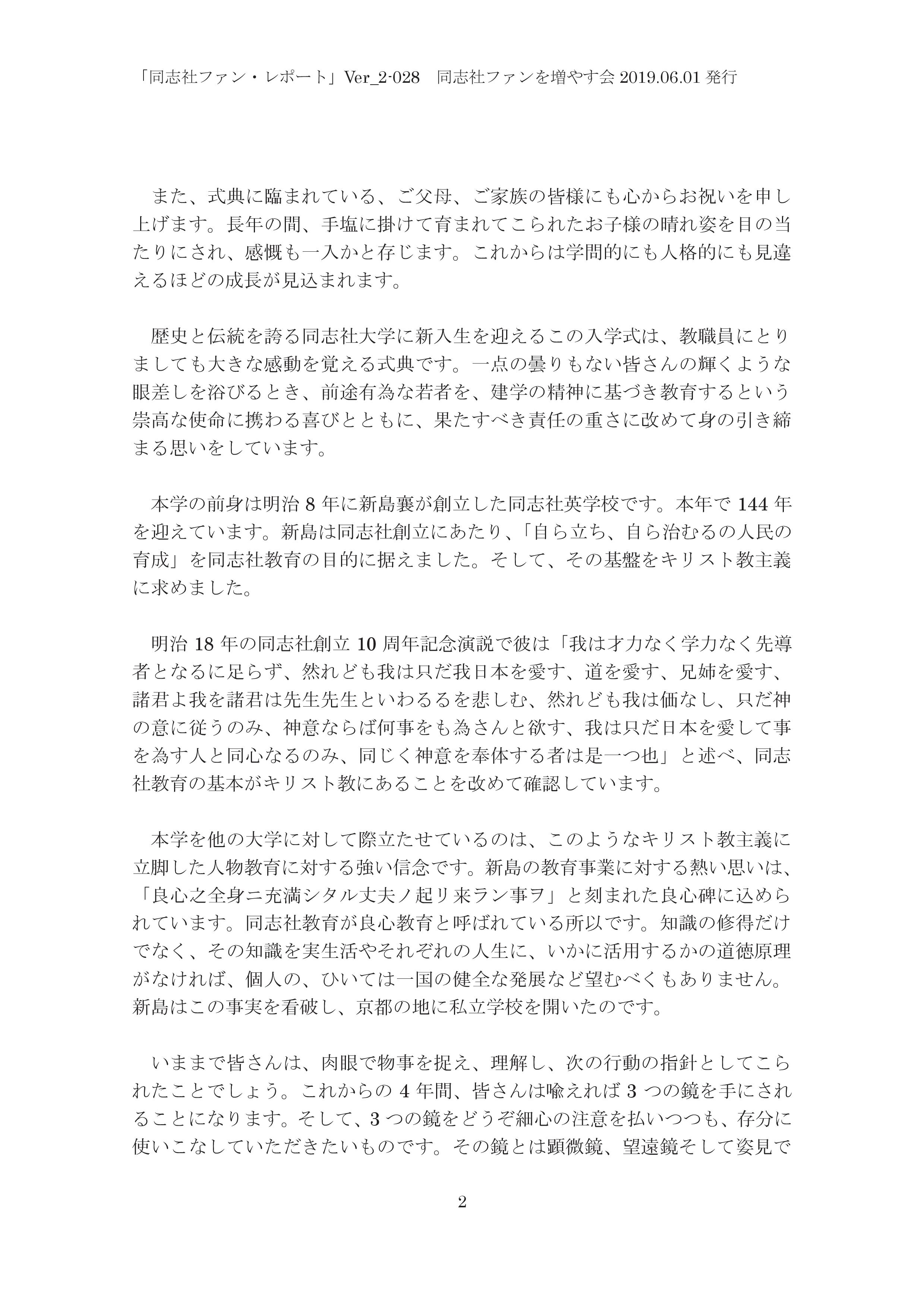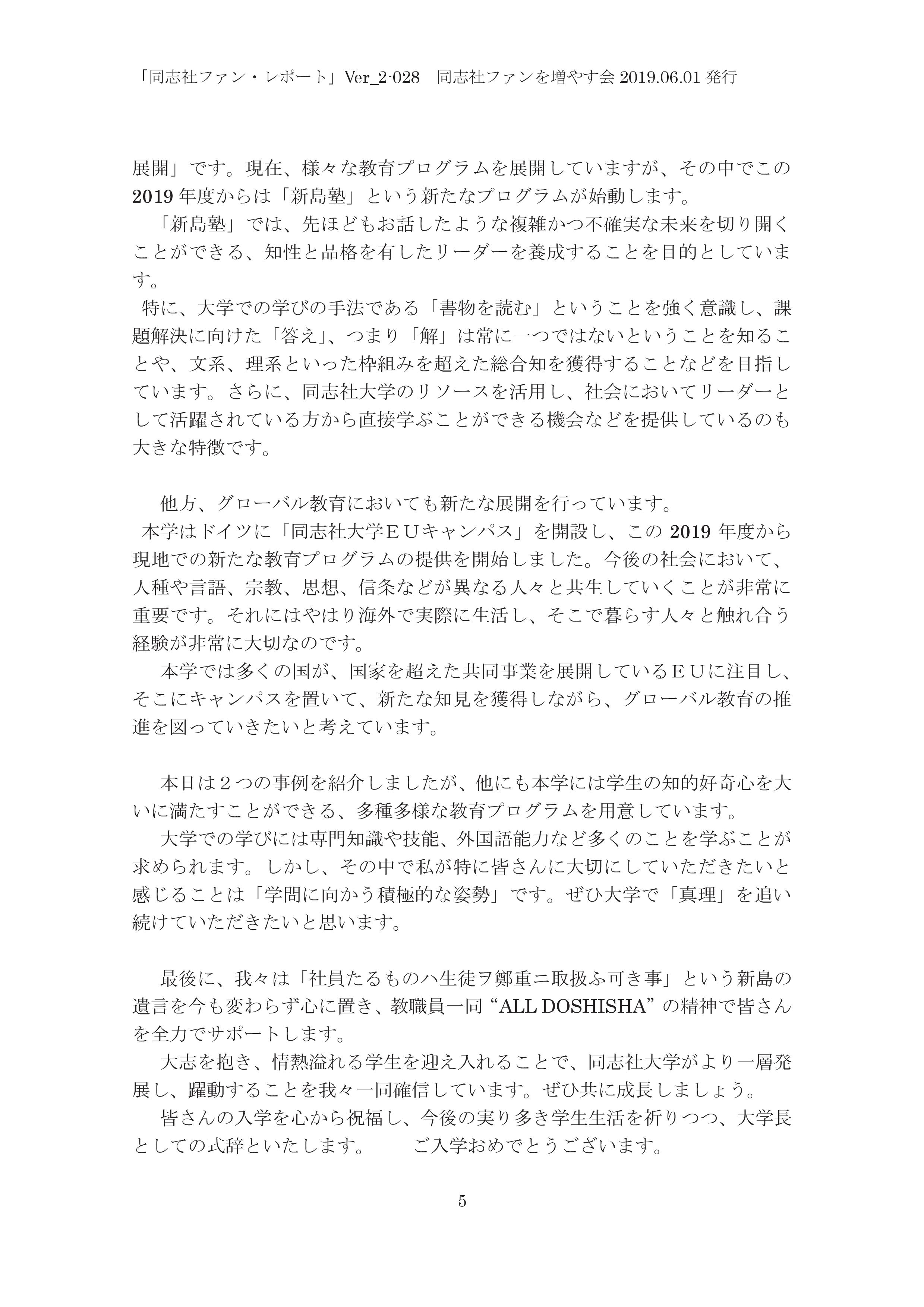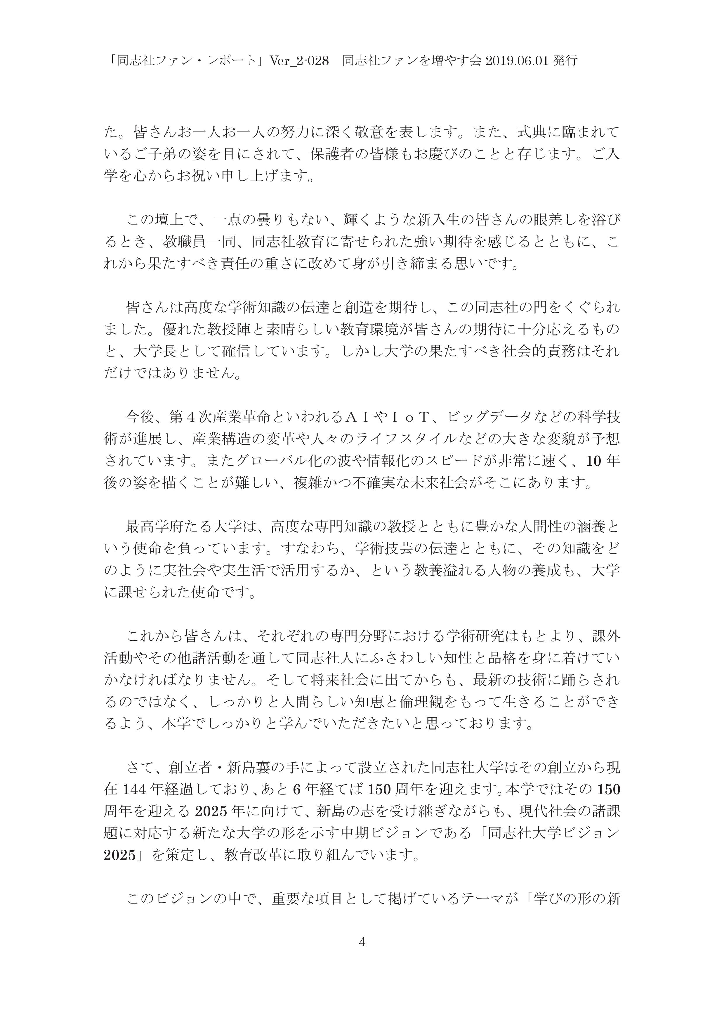 「2019年同志社大学の入学式祝辞」 Ver.2-029 2019/6/1発行