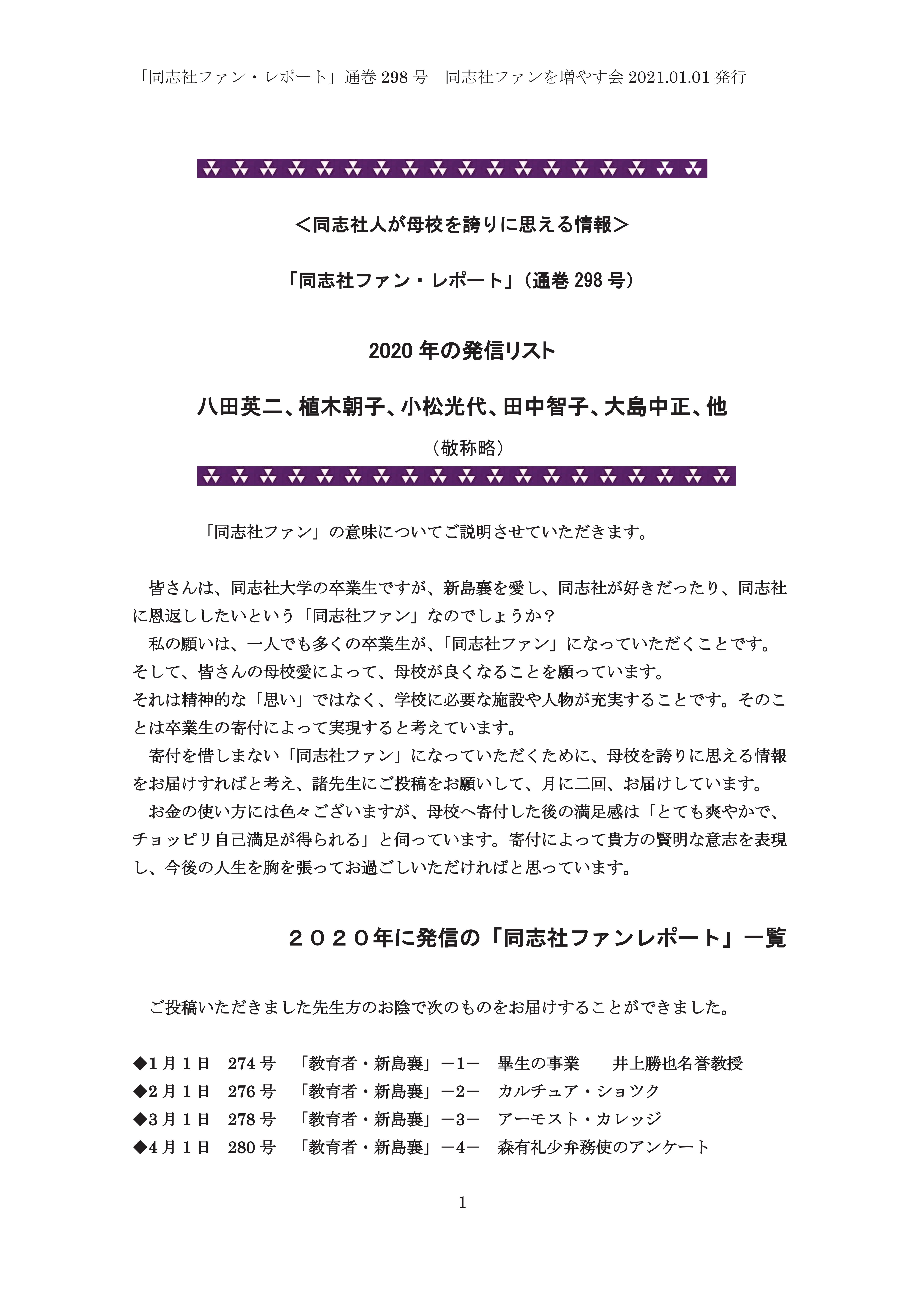 4. 2020年の発信リスト 通巻298号 2021/1/1発行
