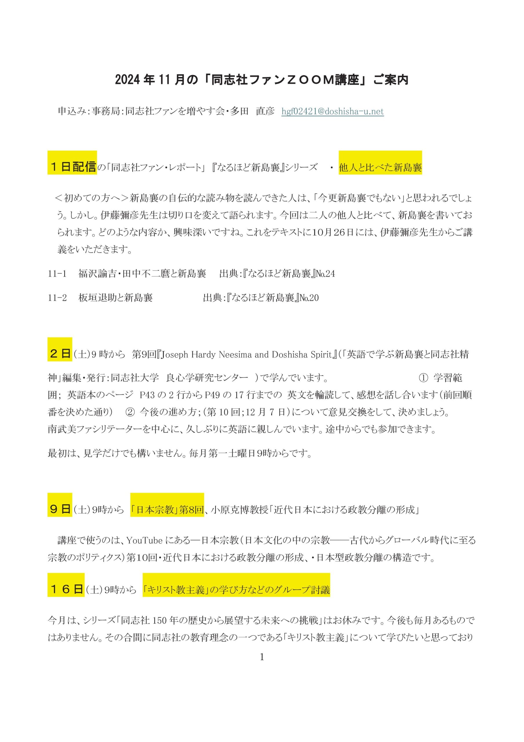 4. 2024年11月の「同志社ファンZOOM講座」ご案内
