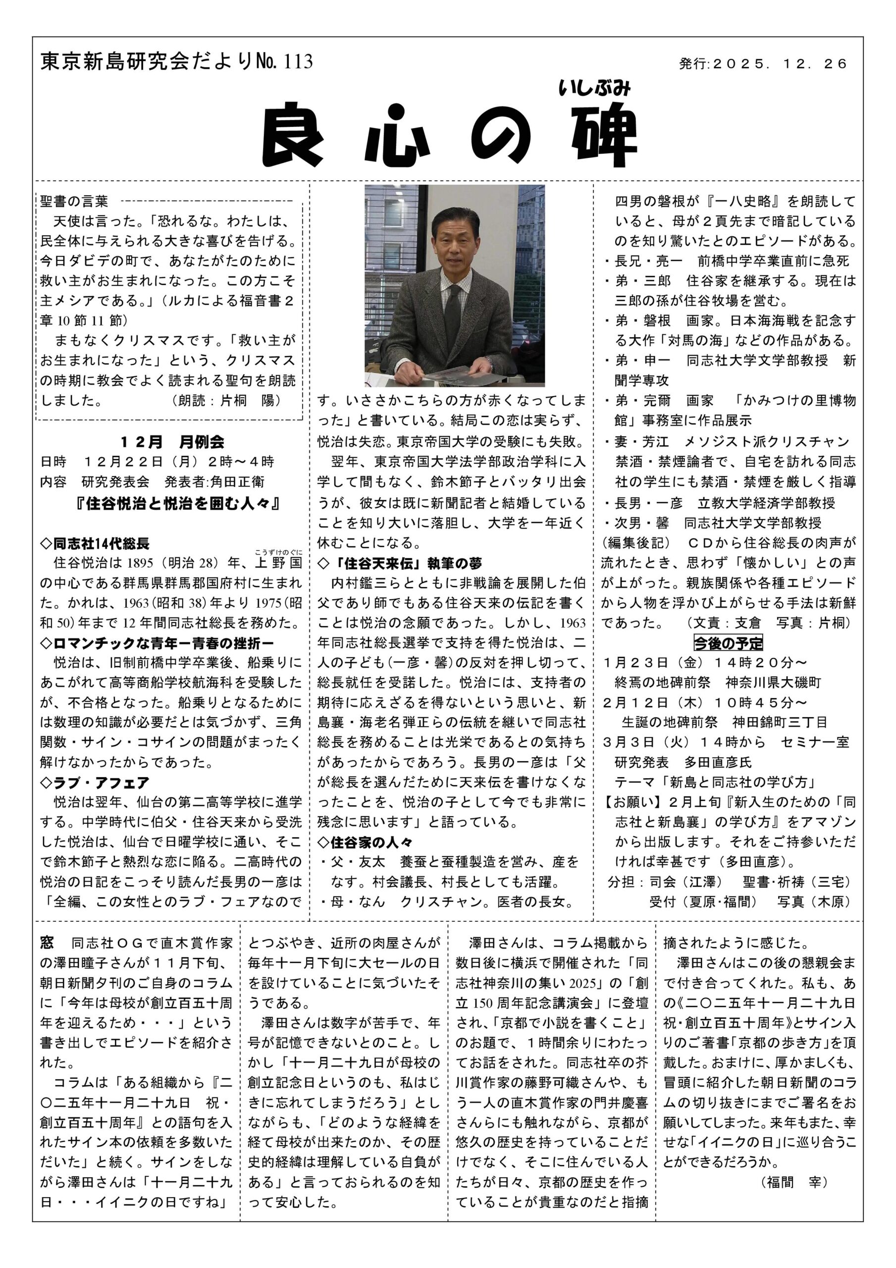 【東京新島研究会だより】 良心の碑 No.113 2025/12/26発行
