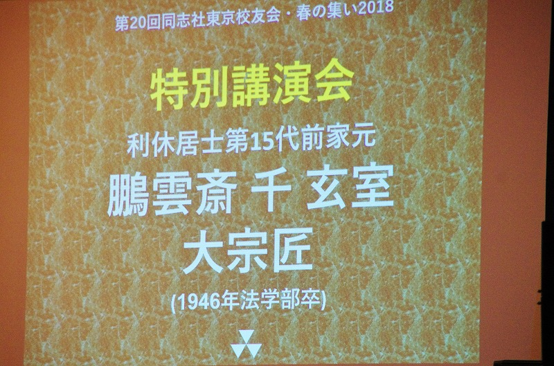 第二部は同志社の大先輩、裏千家 千玄室大宗匠のご講演からスタートしました。