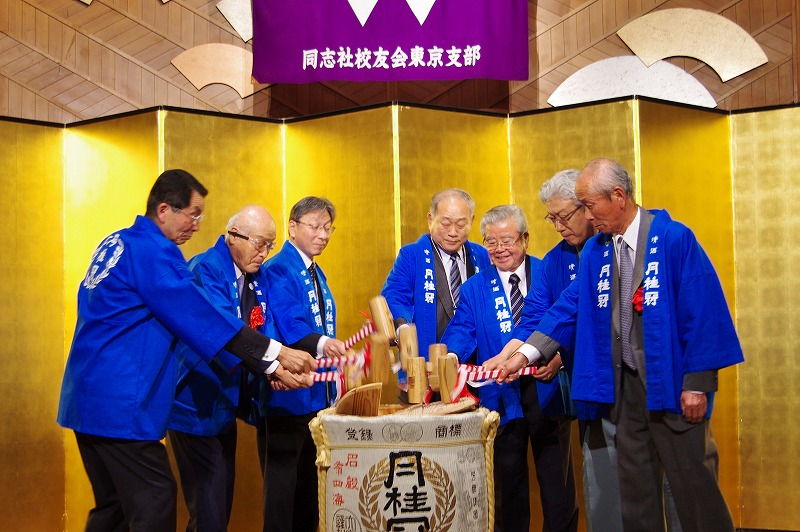 八田総長・理事長、松岡学長、井上校友会会長、児玉東京校友会会長などによる鏡開きの後、