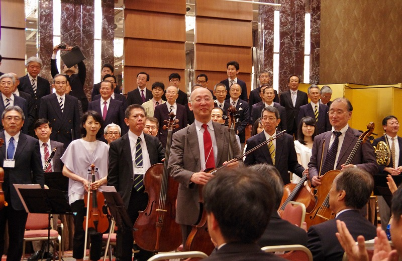 休憩時間中に大懇親会の会場へ向かう同志社東京アンサンブルのメンバー