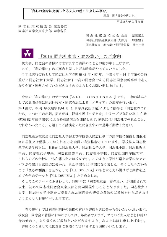 【2016同志社東京・春の集い】 開催要項が決定しました!