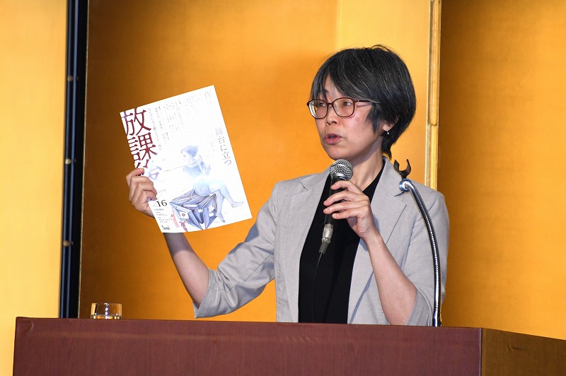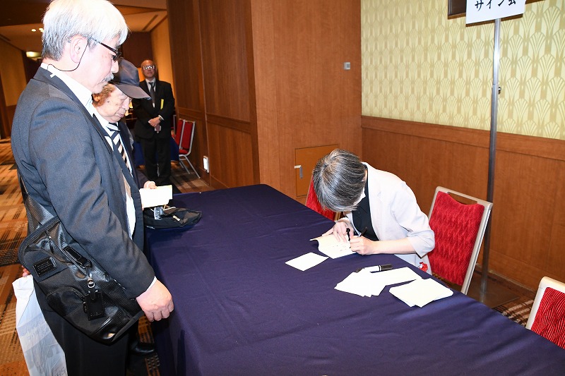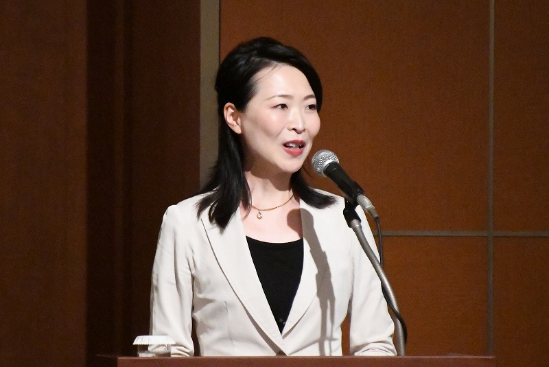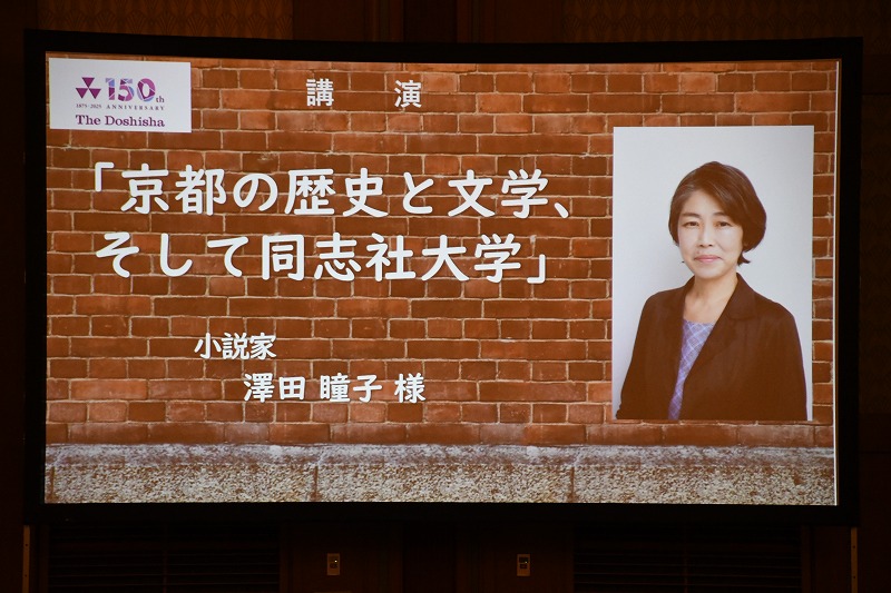 いよいよ本日のメインプログラムである直木賞作家澤田瞳子さんの講演がスタート、「京都の歴史と文学、そして同志社大学」との演題で資料を投影しながら解り易く楽しいお話を、はんなりとお聞かせいただきました。今回の集いのテーマである我らが京都の地ならではの悠久の時に想いを馳せる時間となったのではないかと思います。