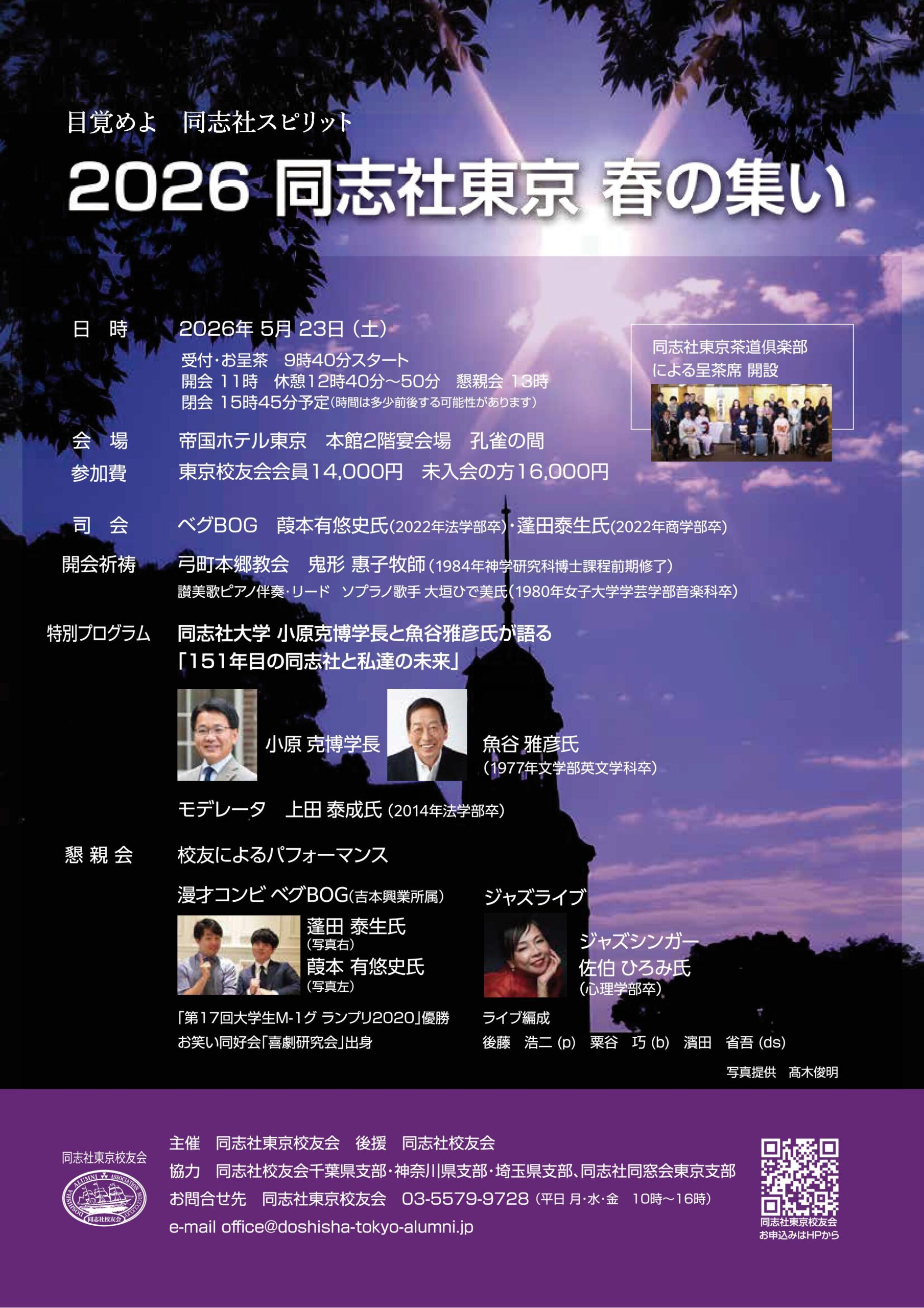 2026 同志社東京 春の集いのメインテーマは「目覚めよ同志社スピリット」です。
